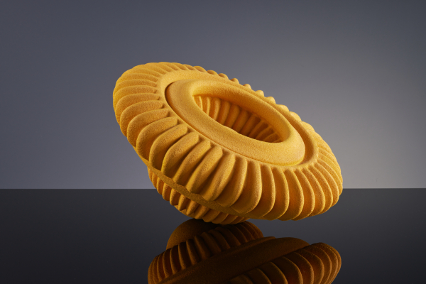 Stoneware with a coating of sand, pigment powder and lacquer. Illustrated in the book Barbara Nanning, 'Eeuwige beweging', ceramics, installations and glass art, on page 47. Similar sculpture in red, included in the collection of the Boymans Van Beuningen Museum, Rotterdam.