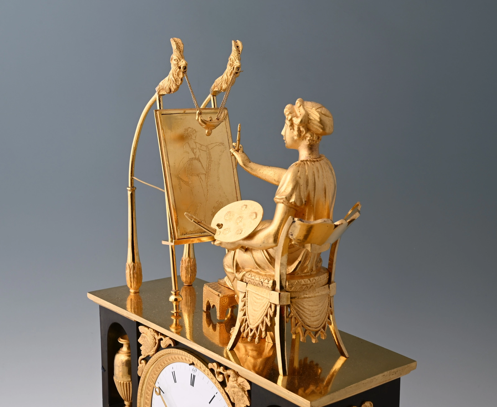 Diese junge Frau am Malgestell symbolisiert die Begeisterung, die zu dieser Zeit für die Künste entstand, hier besonders für die Malerei.