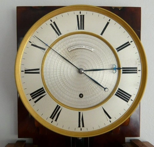 Eine französische Mahagoni-Säulenpendeluhr mit freischwingendem Uhrwerk, Empire um 1820-30.