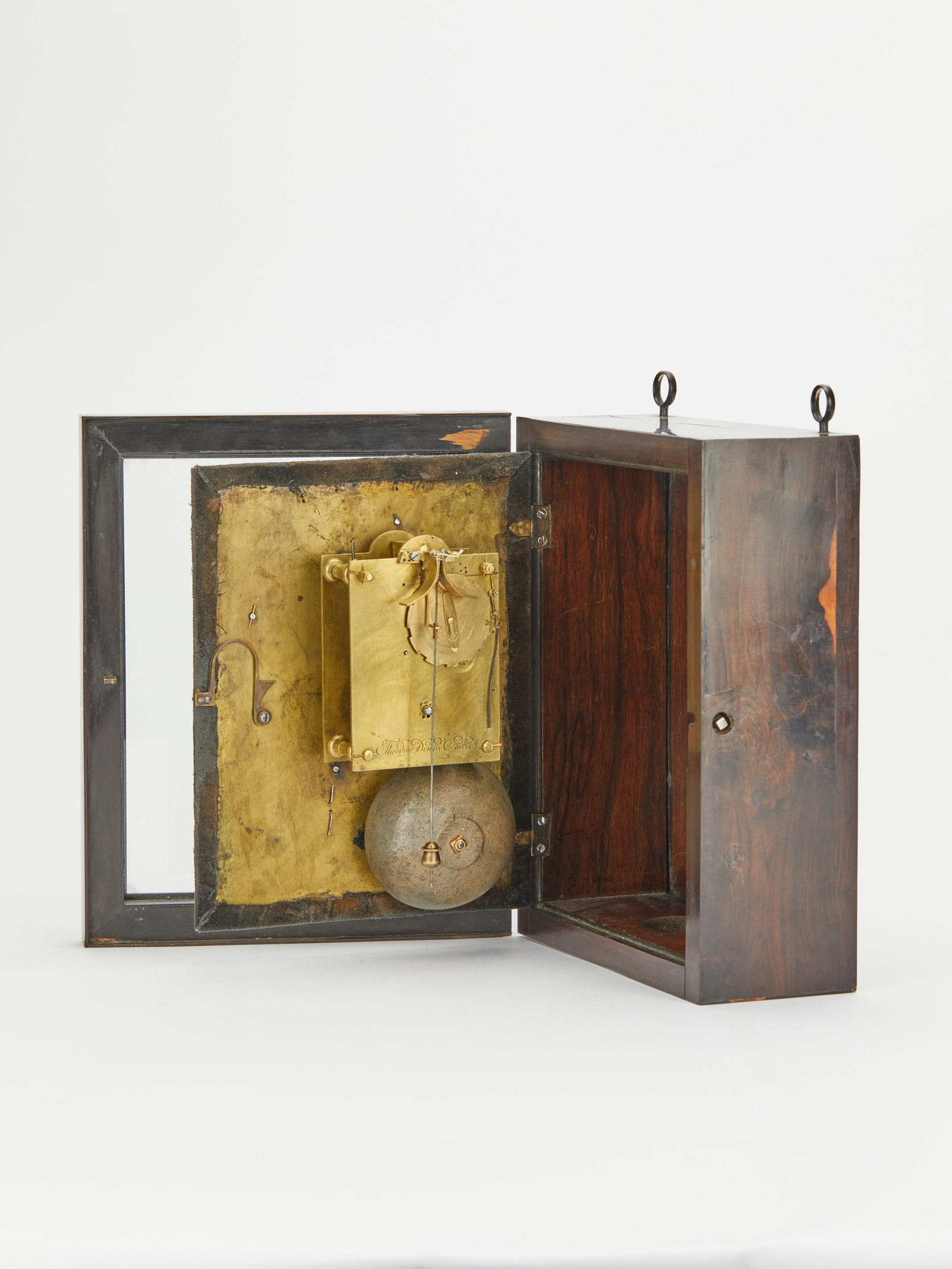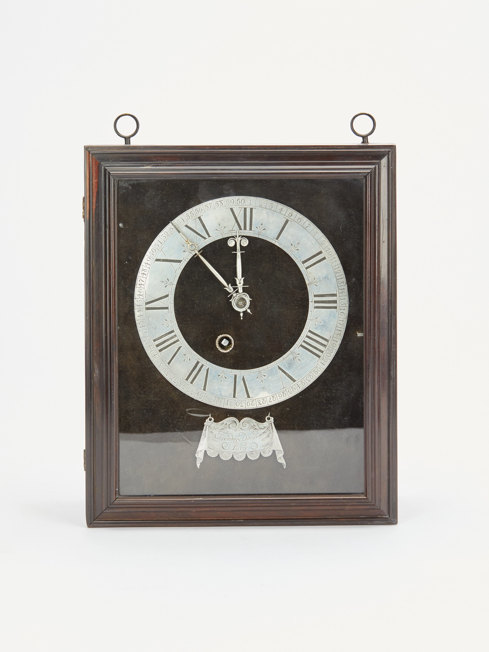 Eine sehr frühe sogenannte religieuse primitive Wanduhr aus dem Jahr 1658, hergestellt von Theodore Domire in Paris