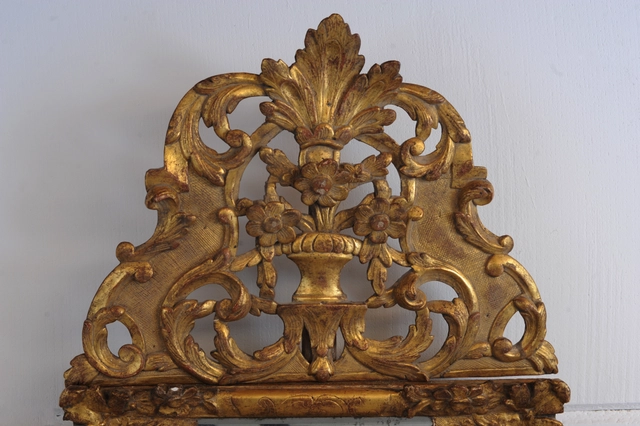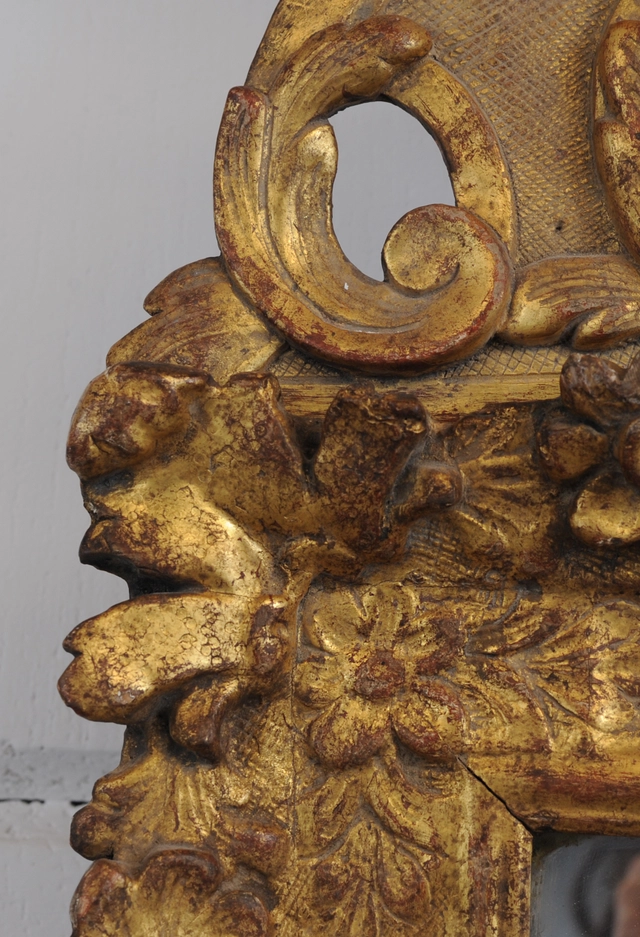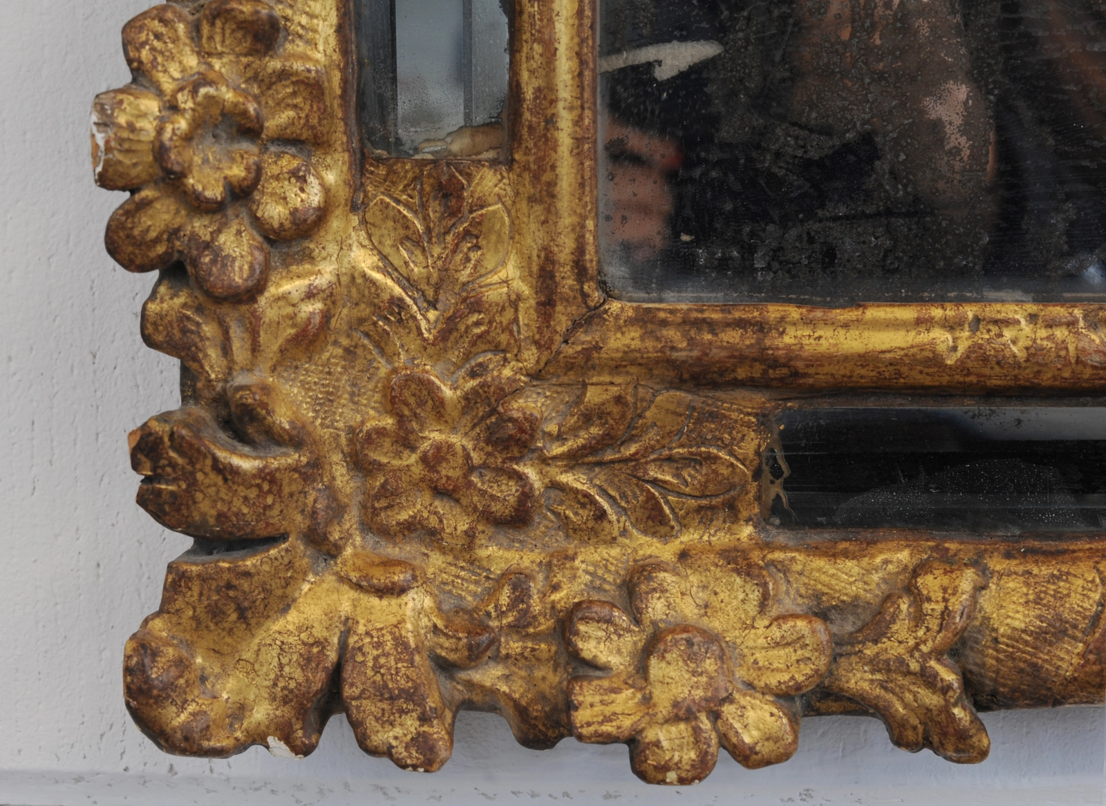 Een Hollandse verguld en gestoken houten spiegel, omstreeks 1750