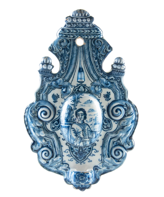 A Blue and White Dutch Delft Earthenware Sconce Decorated with a Figure - Lady