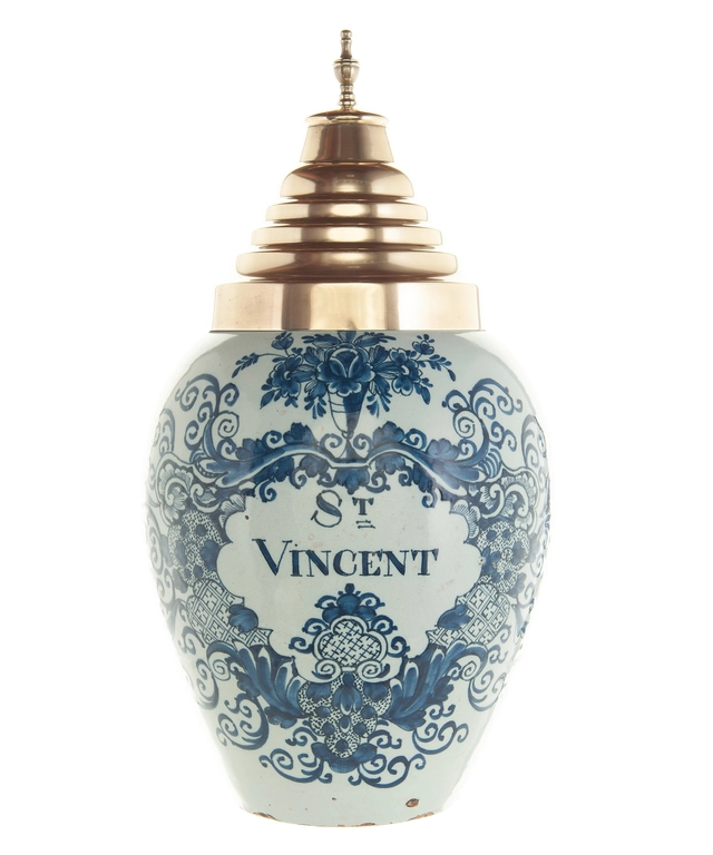 Een Blauw-Witte Tabakspot in Delfts Aardewerk 'Havana'