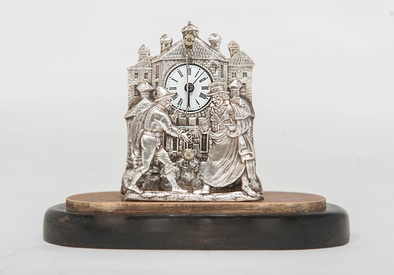 C03 Miniatuur gegraveerde vorderzapler reisklokje