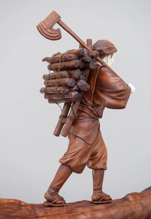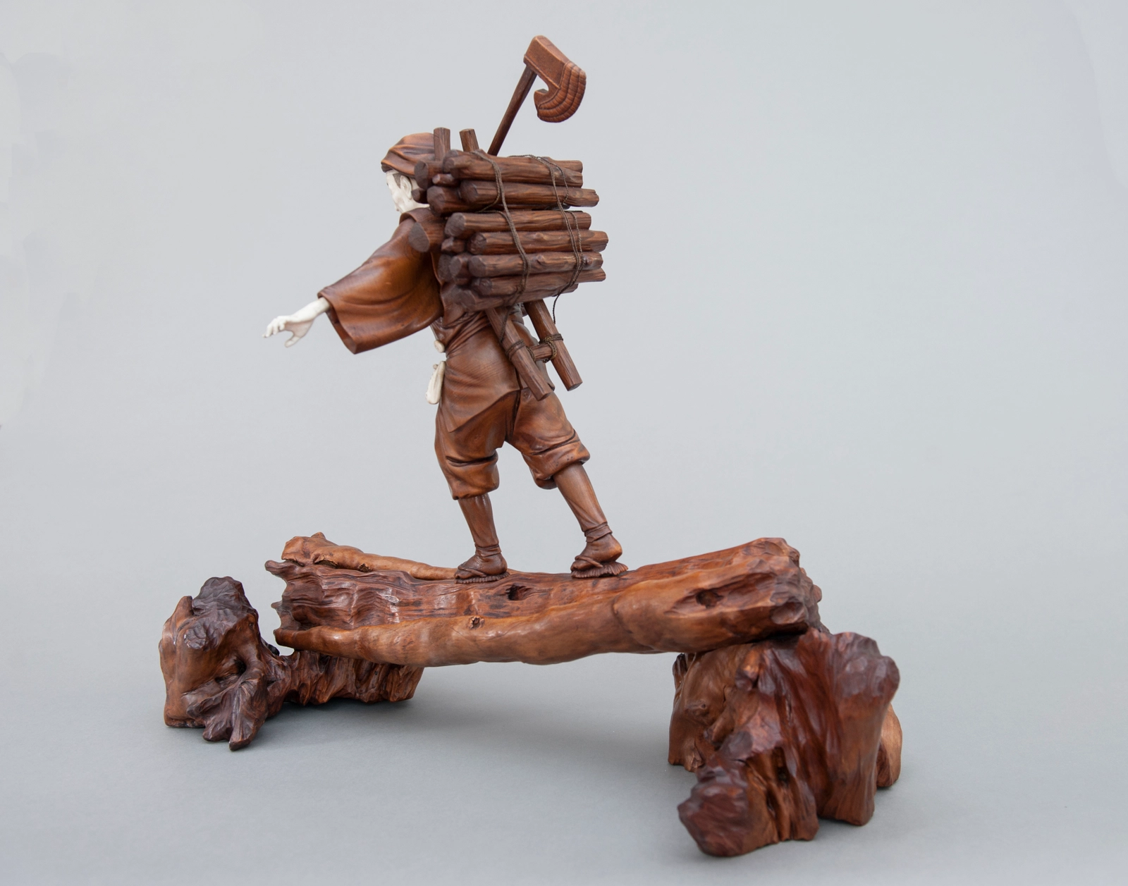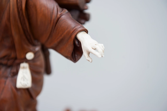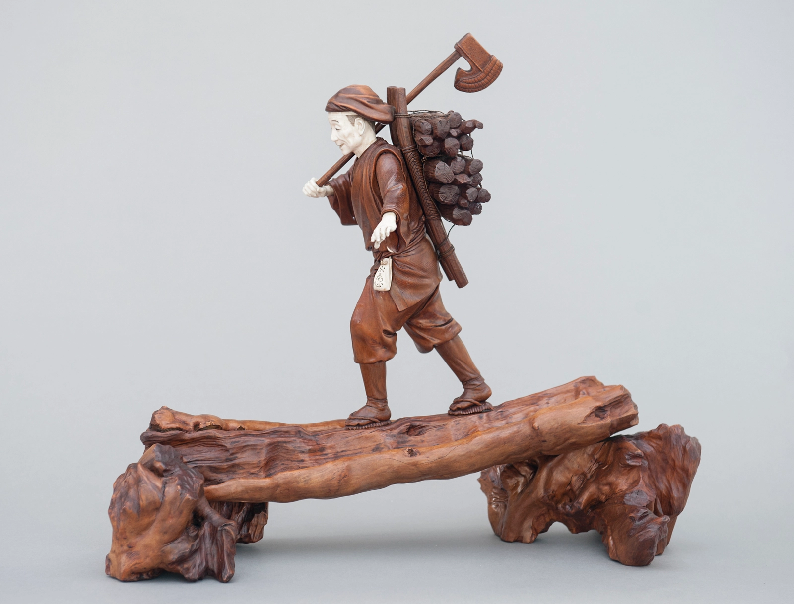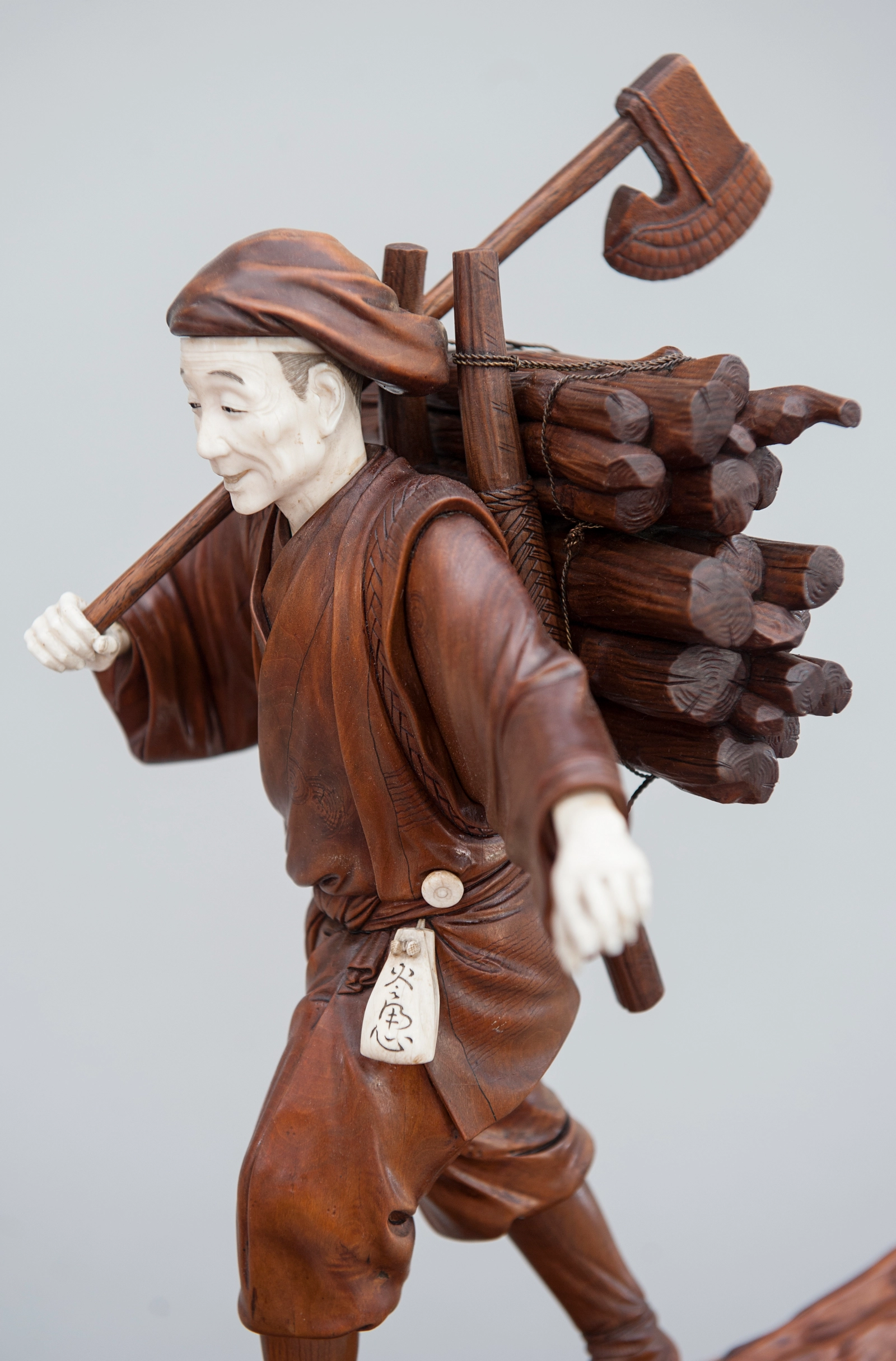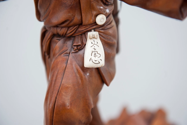 Een paar buxushouten vermoedelijk Japanse 'sater' figuren, ca. 1880.