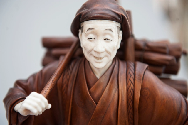 'Man op karper', een Japans gesneden ivoren beeldje, circa 1900.