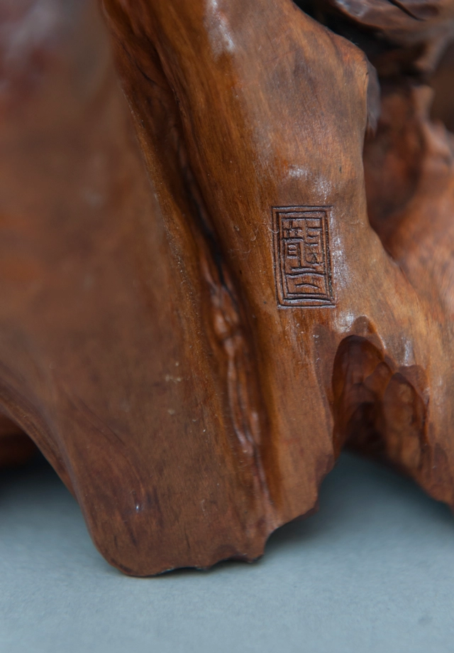 Een fraai gestoken Chinees houten beeldje van een man, circa 1920.