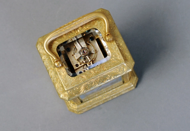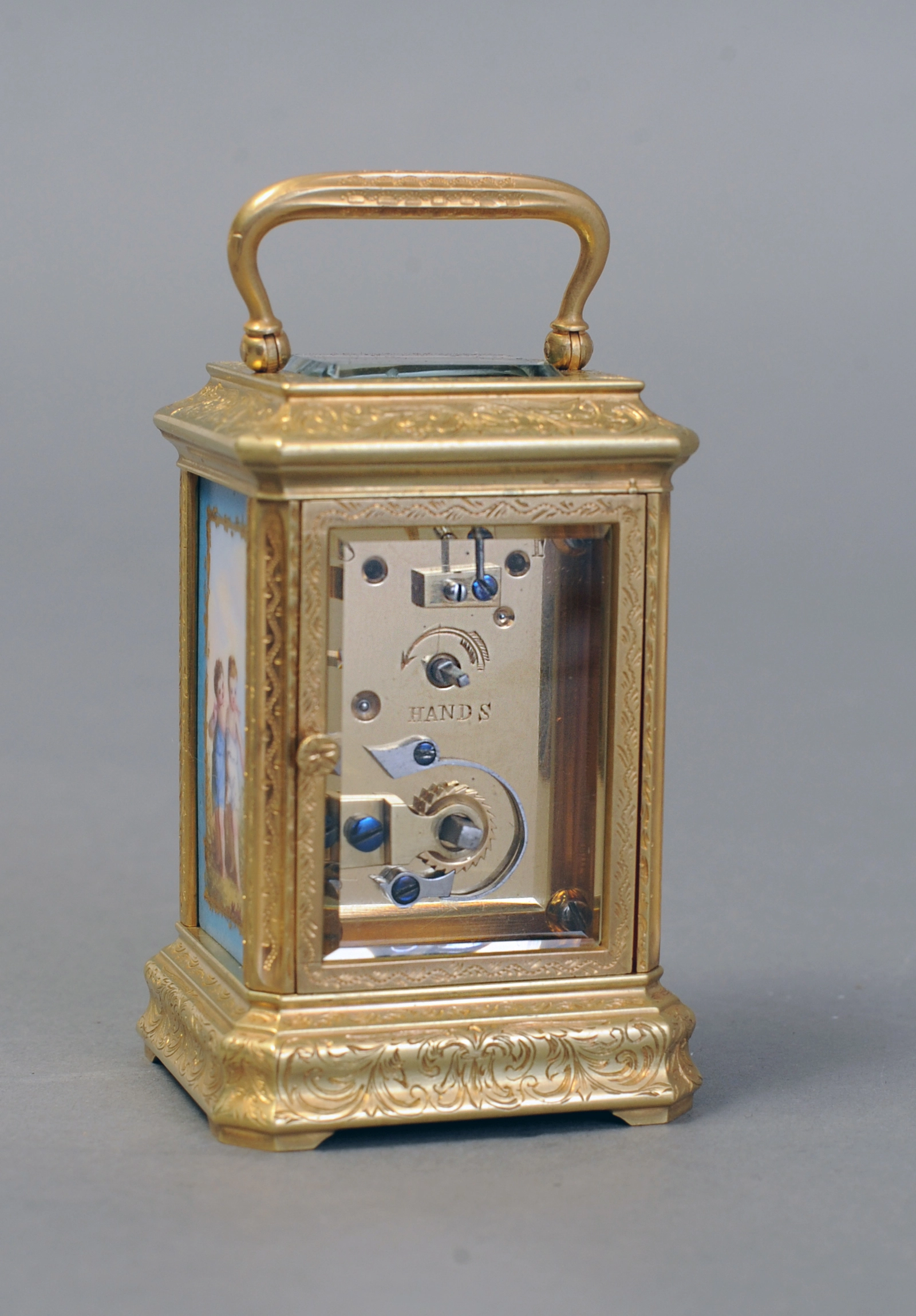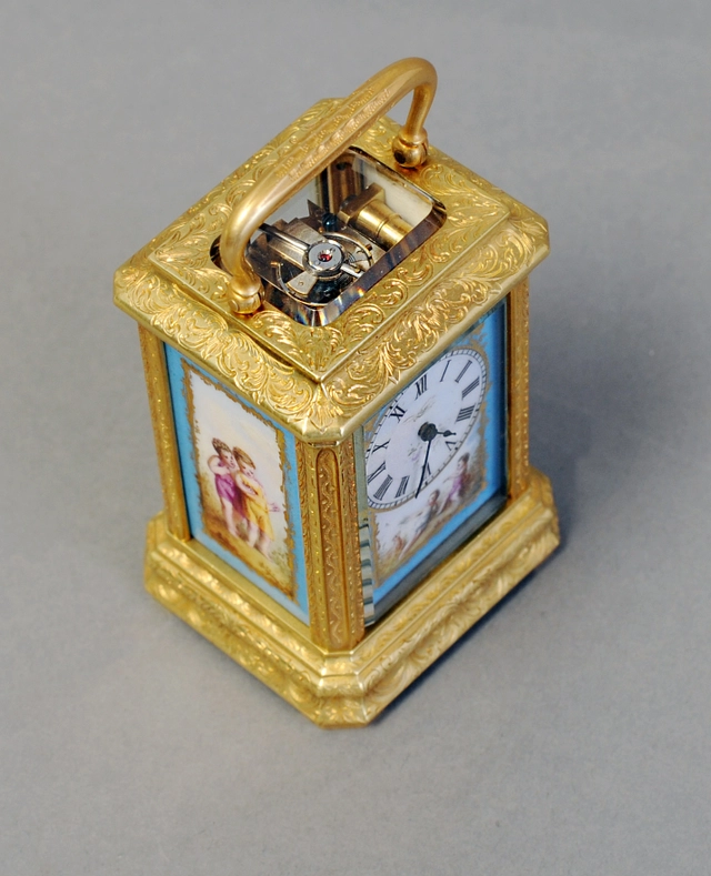 Een fraaie Franse verguld messing reiswekker met kwartierrepetitie, door Margaine, circa 1870