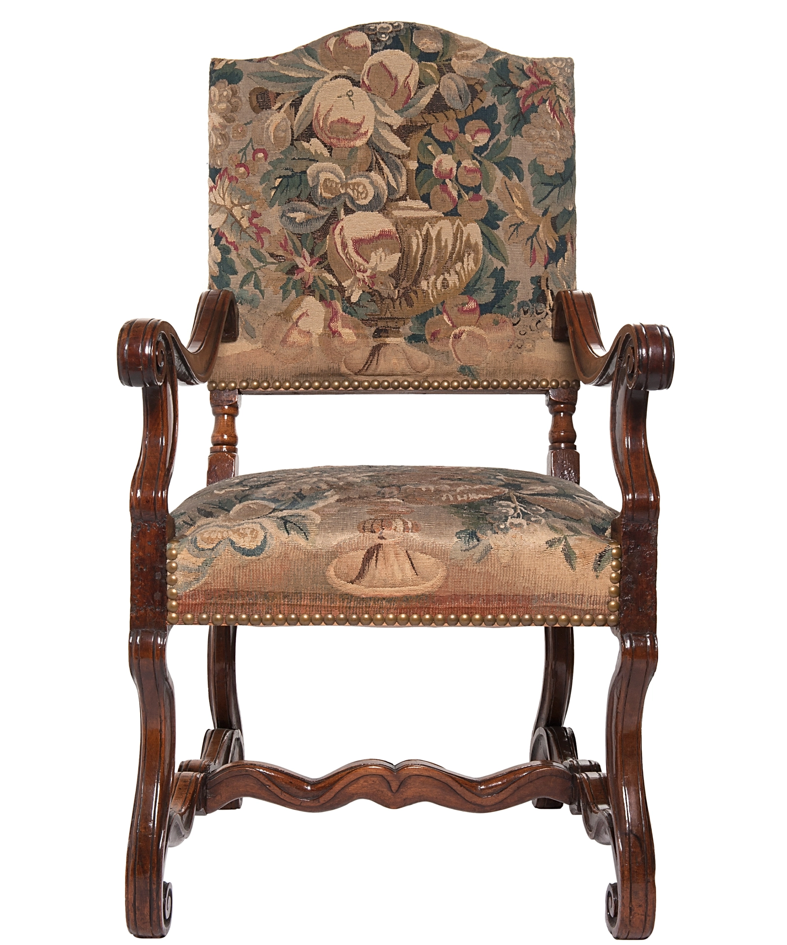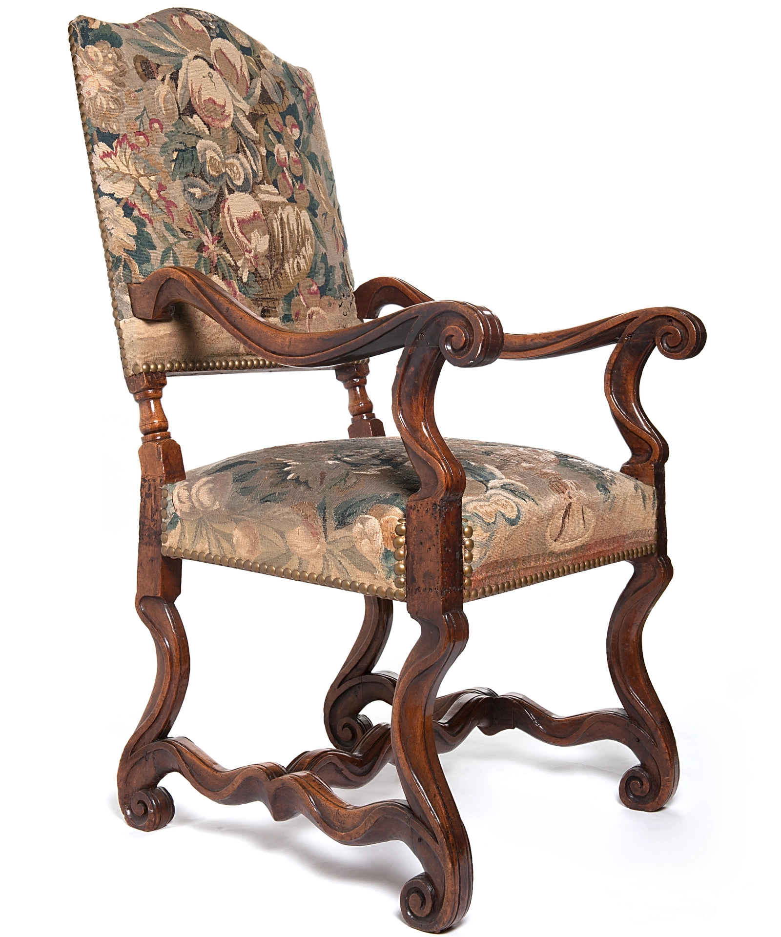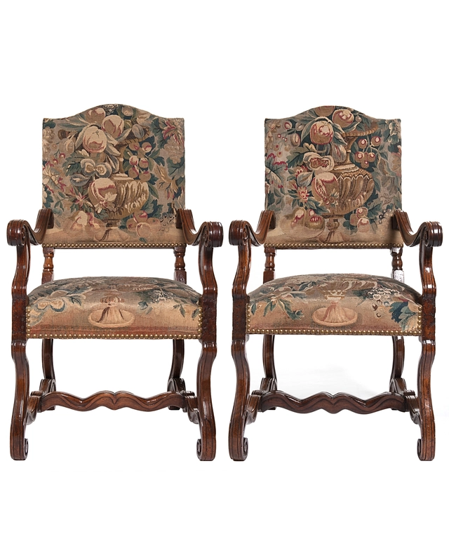 A Pair of Tapestry Upholstered Chestnut Louis XIV Chairs