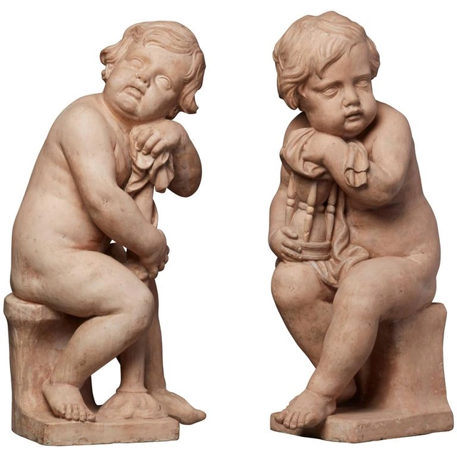 A pair of Terracotta putties sculptures signed by Mathieu de Tombay, circa 1837
