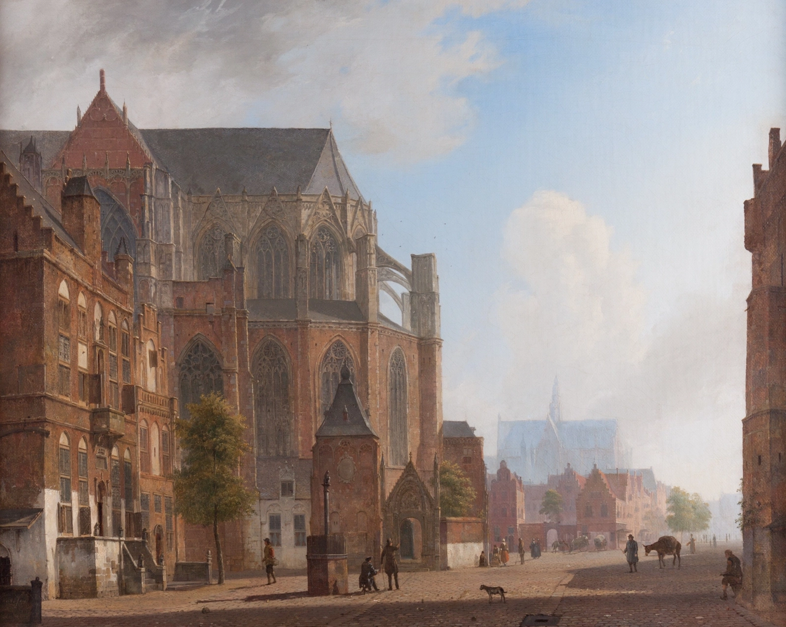 “A Sunny Cityscape” by Kasparus Karsen is less a documentary record and more an evocative celebration of the historic European city, brought to life through light, architecture, and the bustle of everyday people.