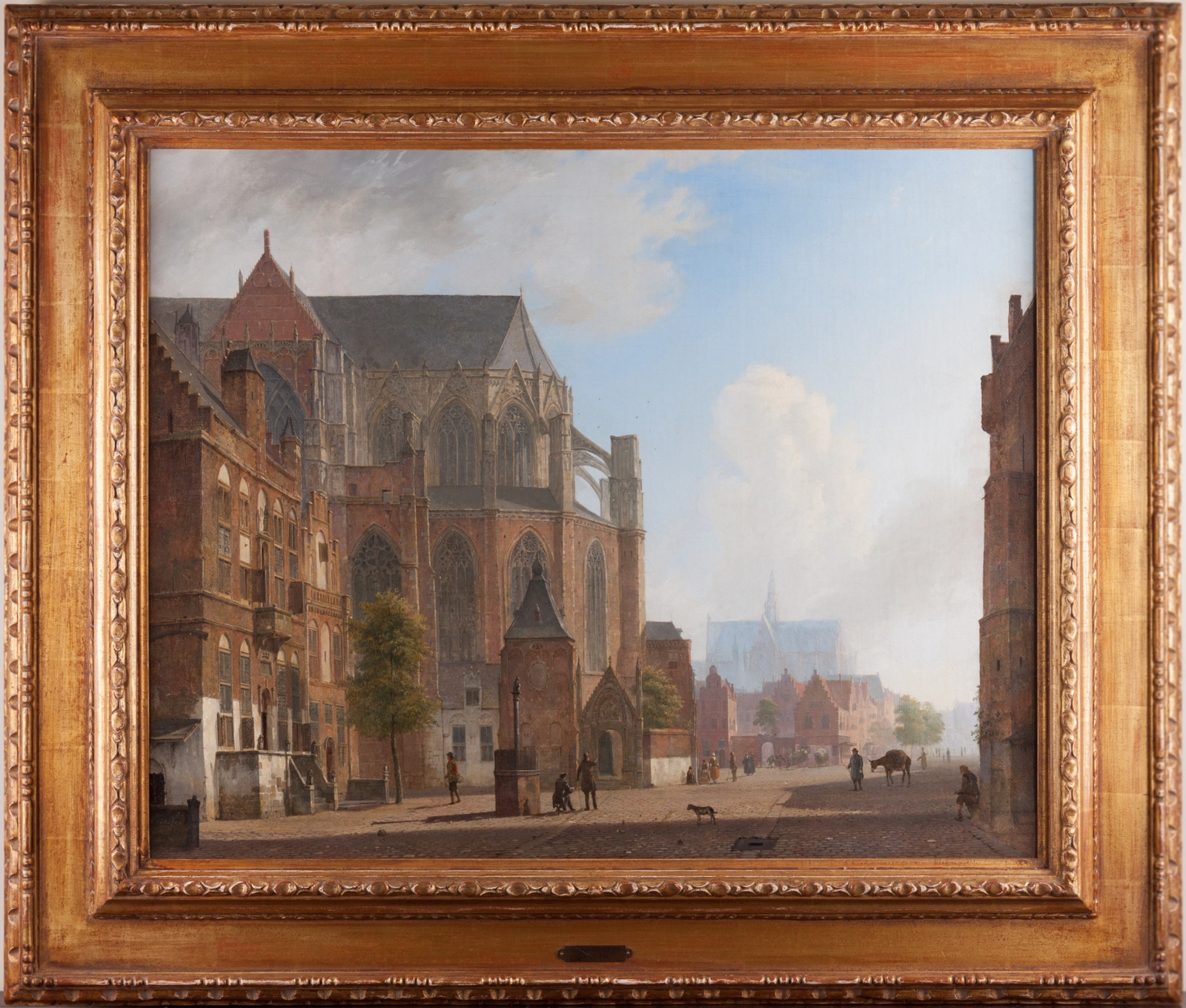 Kasparus Karsen (1810–1896) was a renowned Dutch painter, best known for his evocative cityscapes and river views. Karsen specialized in townscapes, often blending elements from reality with imaginative details to create idealized urban scenes rather than precise topographical representations. He combined real architectural features and urban motifs from various cities he visited—such as those along the Rhine and Danube—with his imagination to produce an idealized, harmonious city scene.