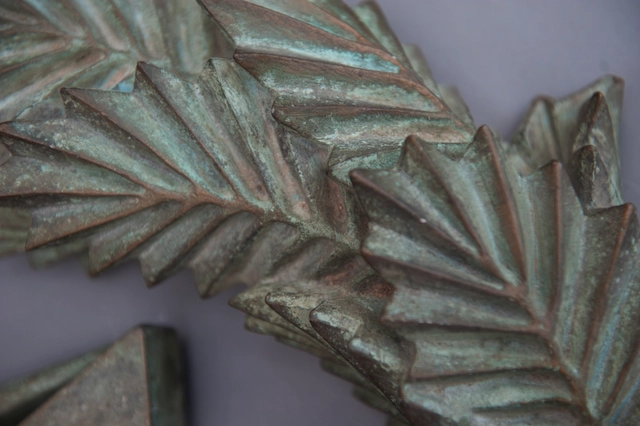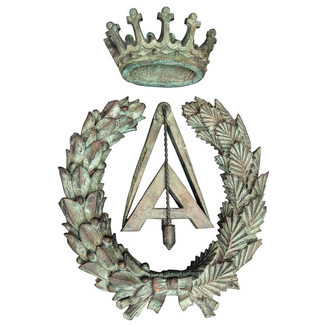 An unusual bronze wall decoration possibly Masonic or Mathematic symbols