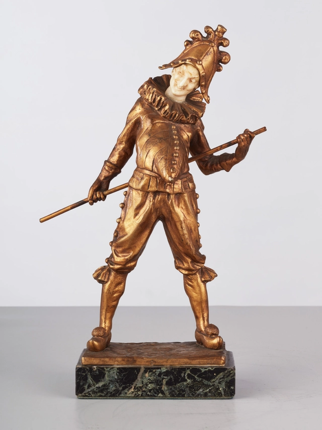 Een Art Deco brons marmer en ivoor beeldje van een auto, circa 1920.