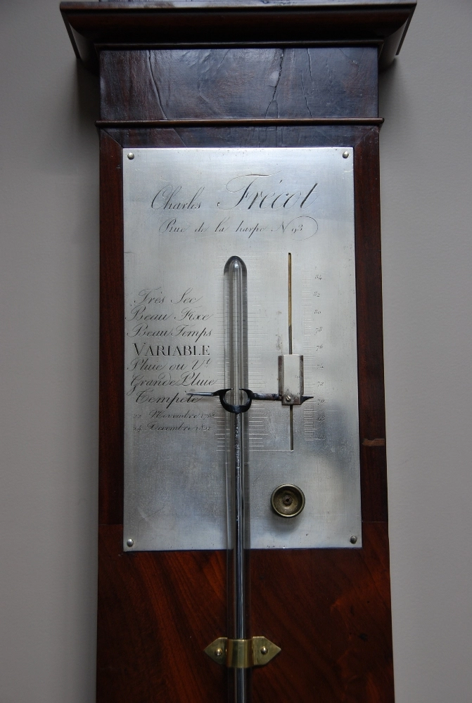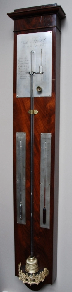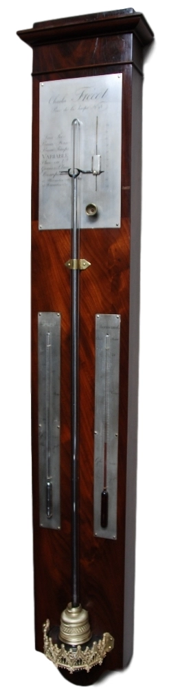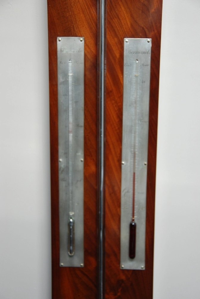 A French Charles X mahogany wall thermometer and barometer (a pair), by Lerebours, circa 1835