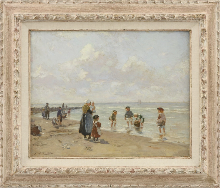 Beach scene with children playing