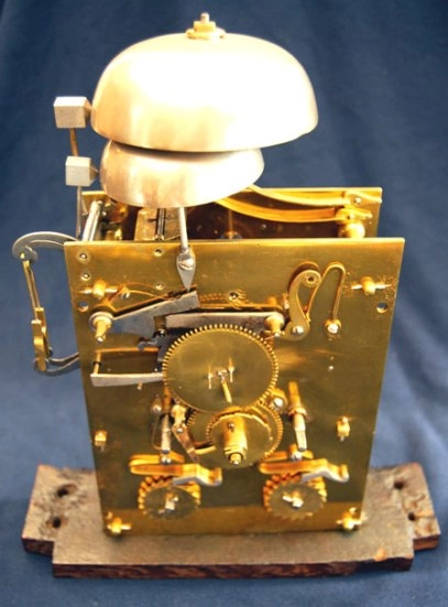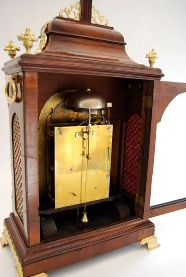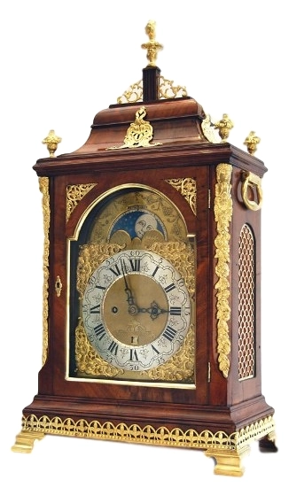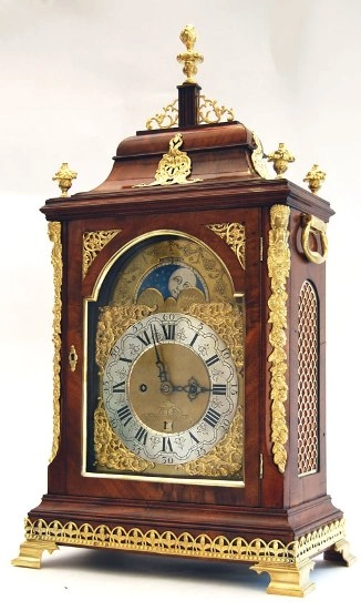 Een kleine Engelse gezwarte tafelklok met maanfase, door Robert Wood, omstreeks 1770