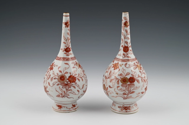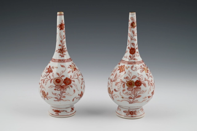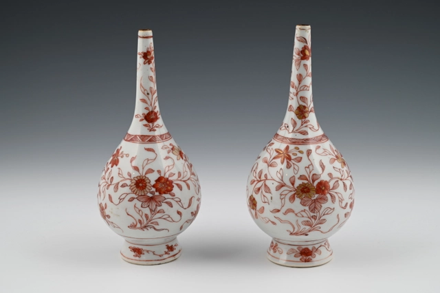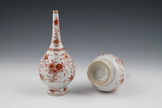 De beschildering is rood op wit glazuur, zogenaamd "melk en bloed".