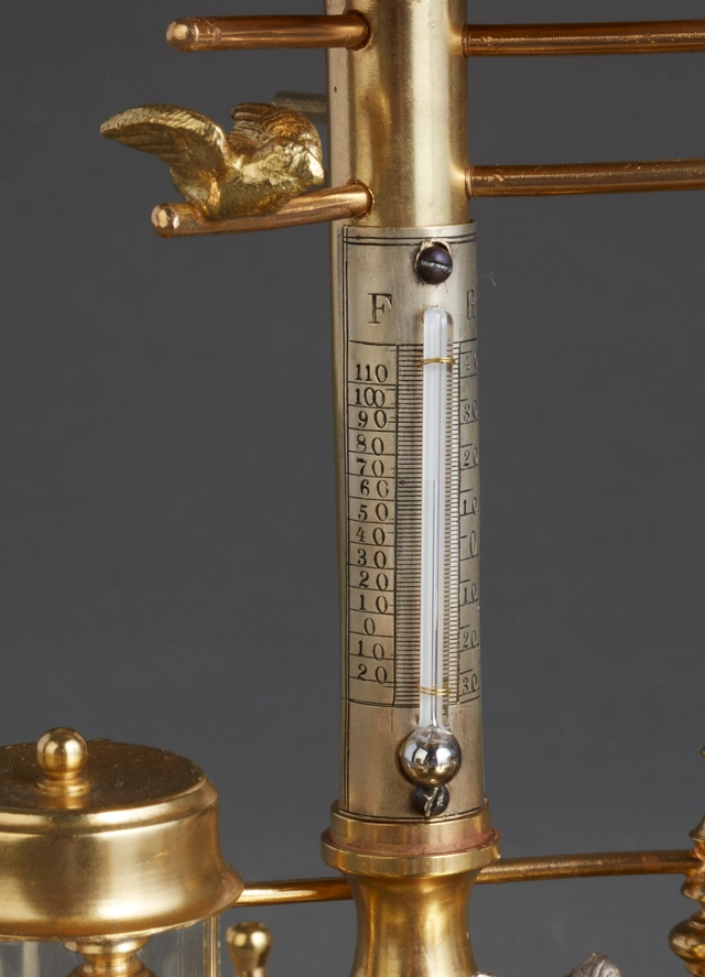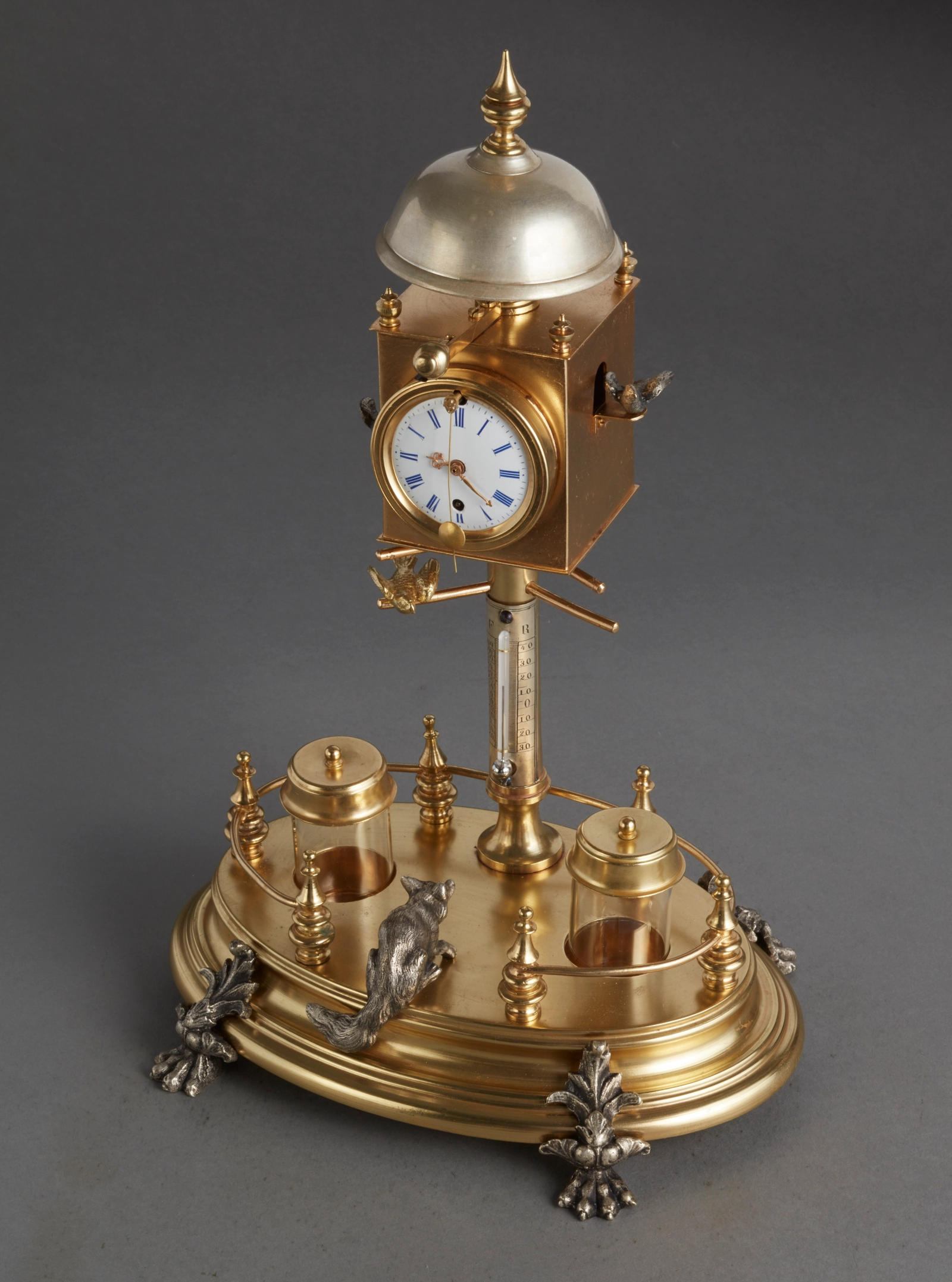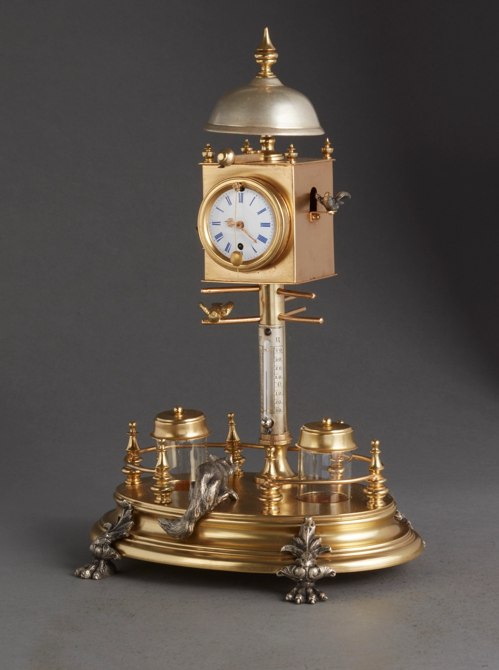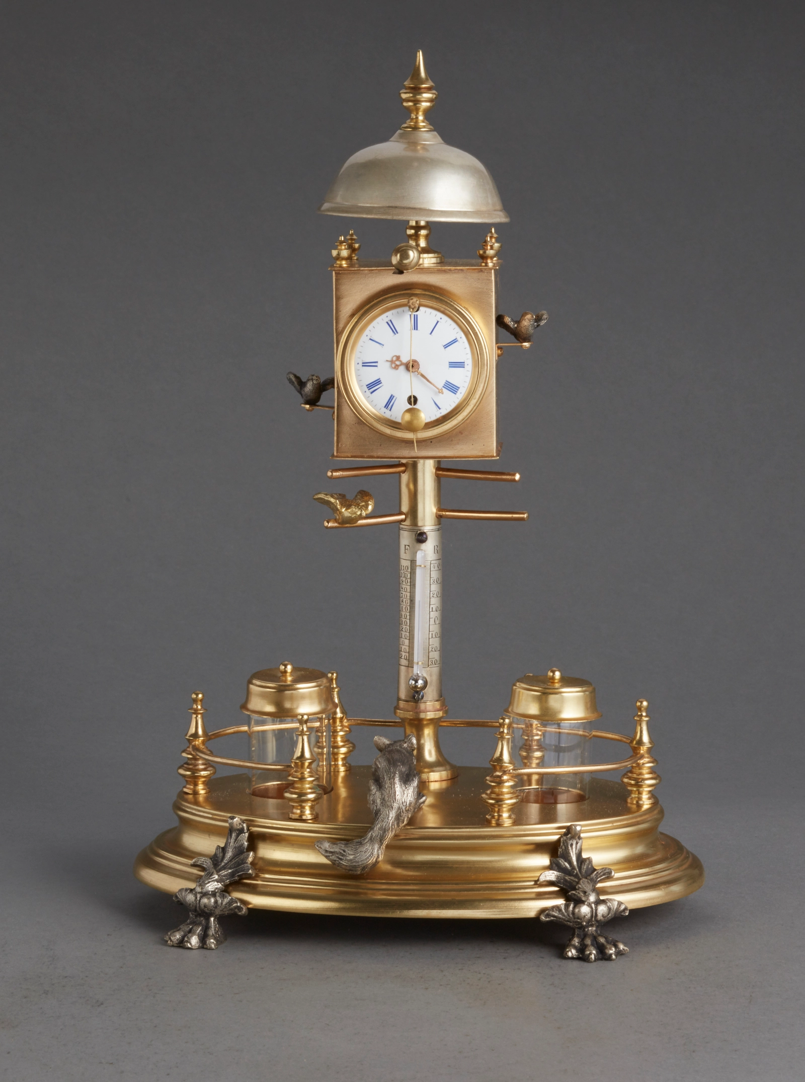 Een Oostenrijkse verguld houten figurale klok met dubbel mechaniek, omstreeks 1830