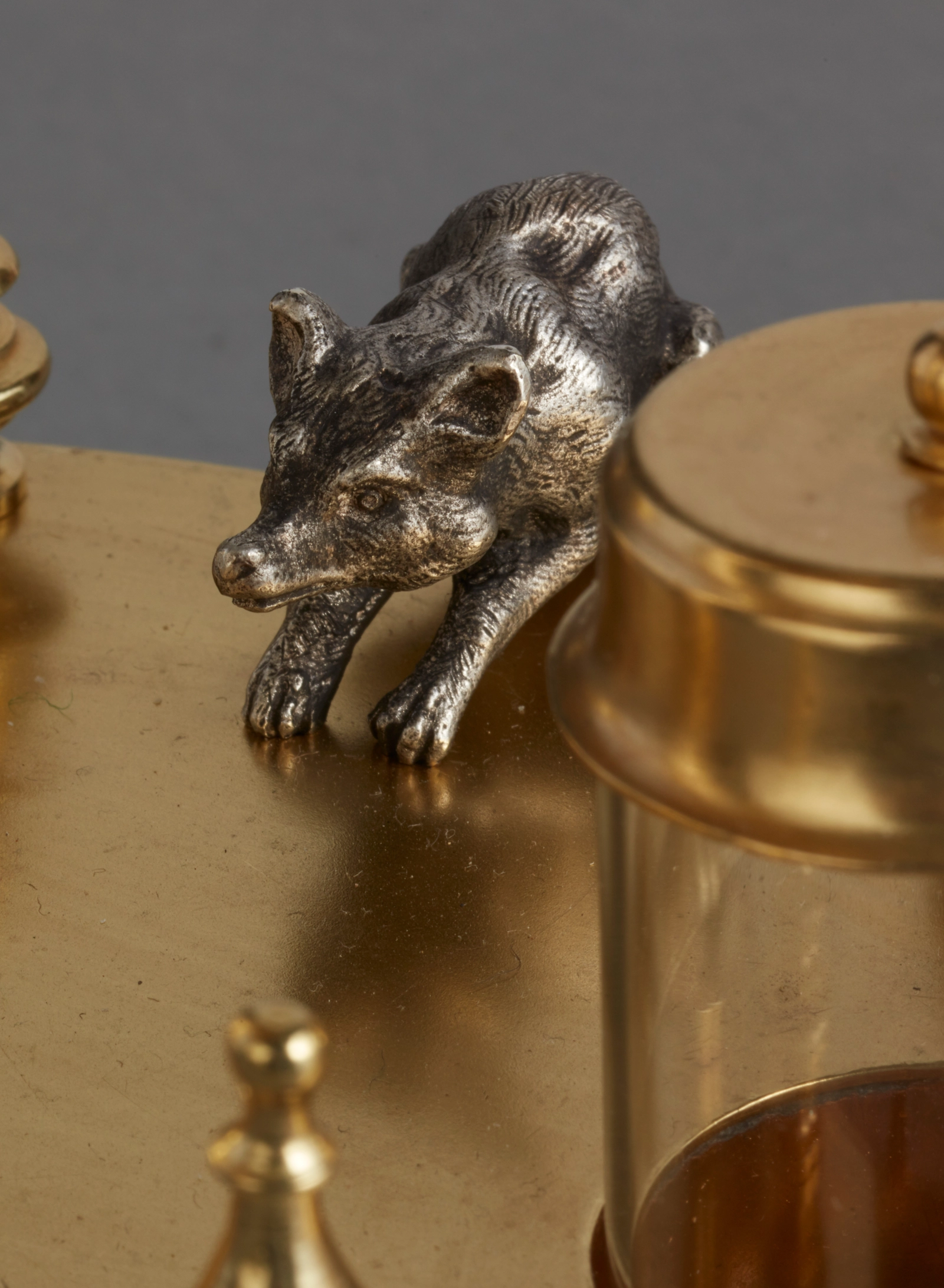 Een miniatuur Frans Regence-stijl verguld messing tafelklokje, circa 1870.