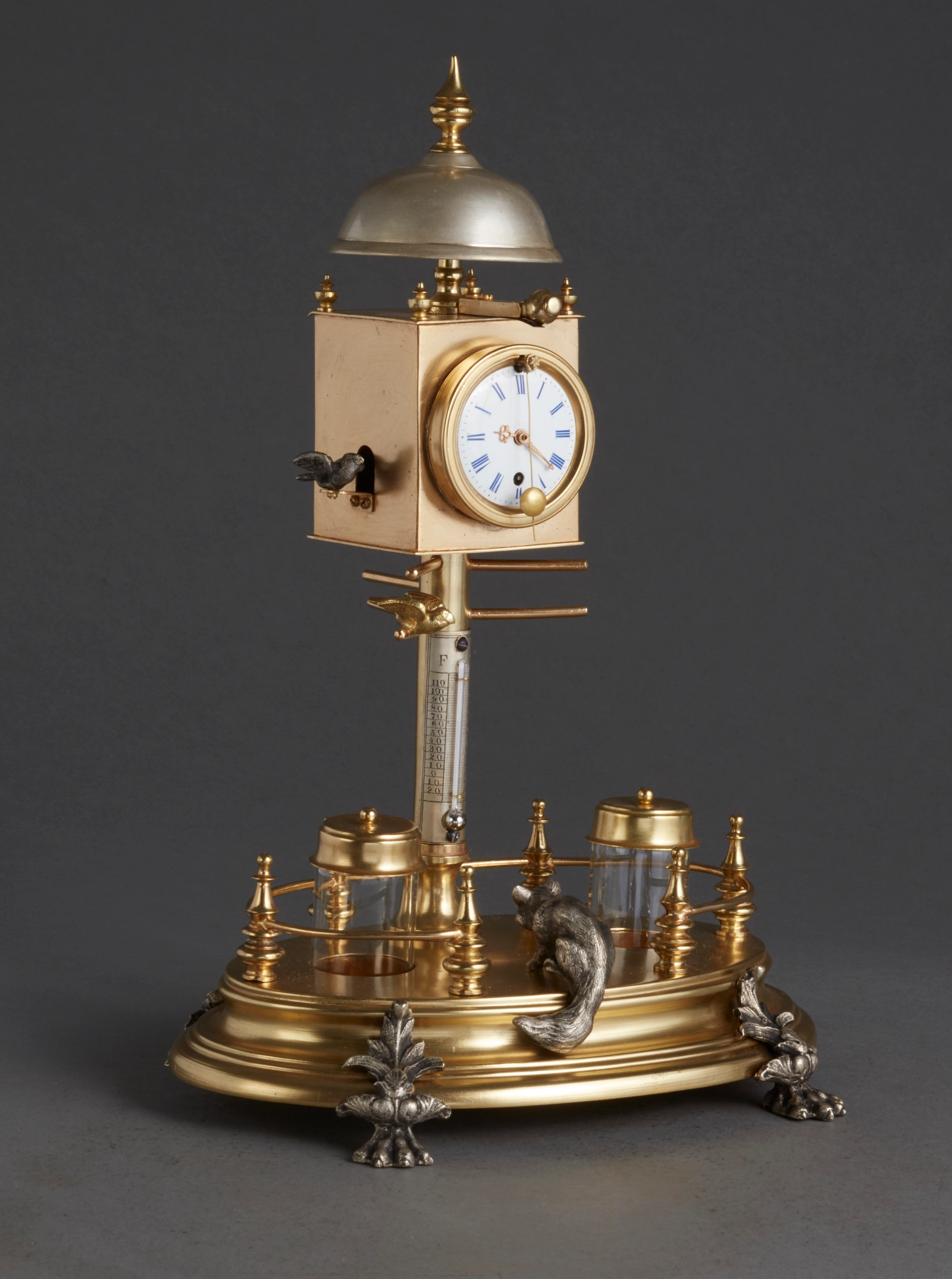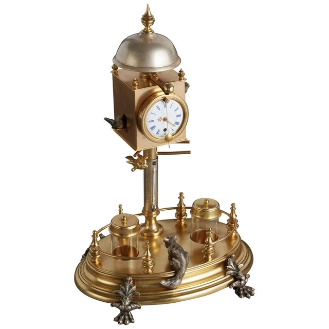 Een zeldzame Duitse Schwarzwald orgel speelklok met vogelautomaat, circa 1820.