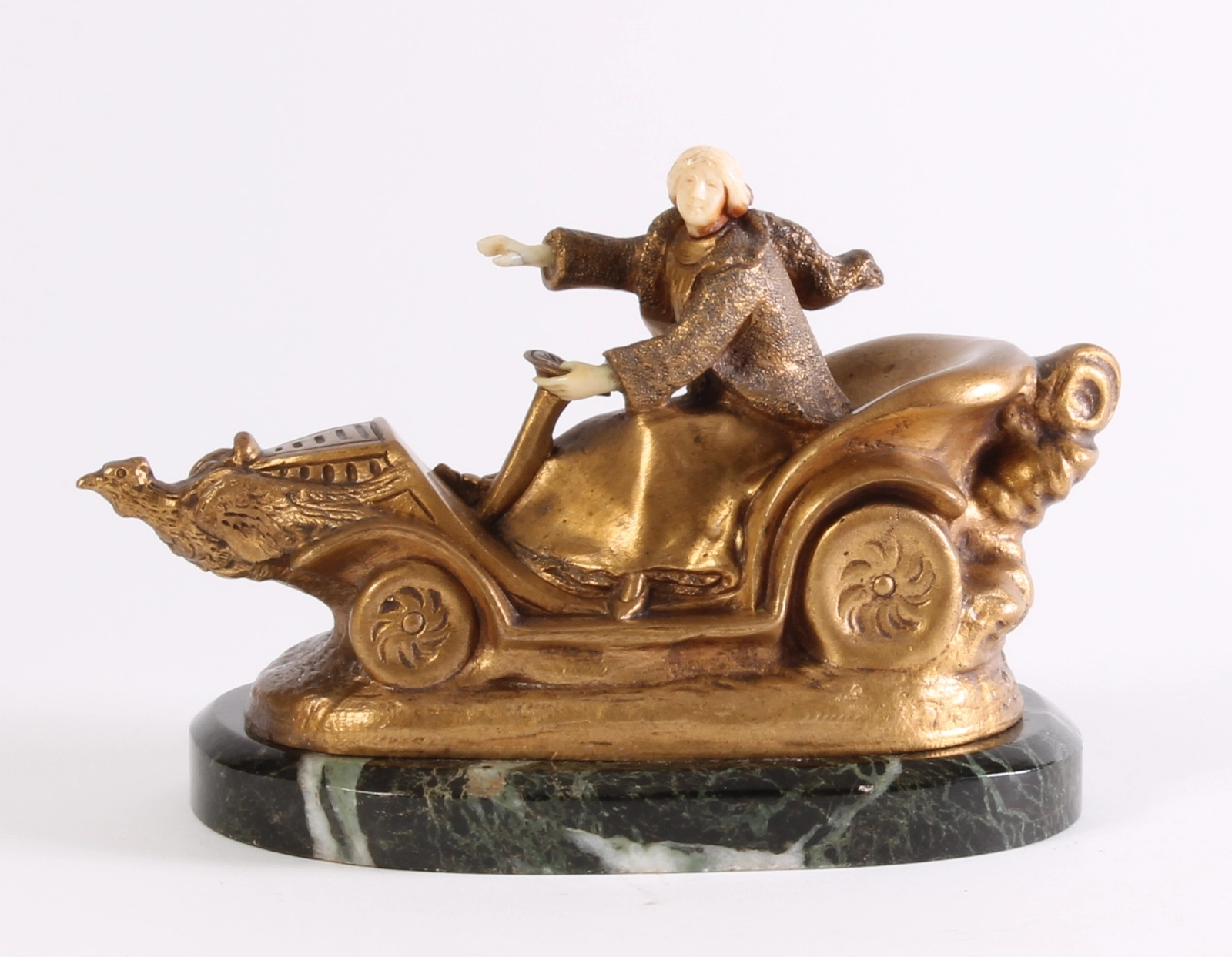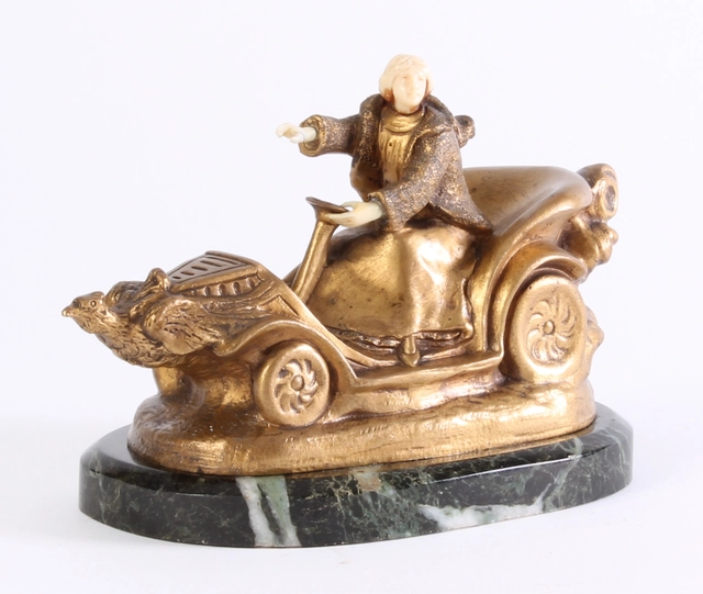 Een Oostenrijks thuja-wortel model van een auto met speelwerk, omstreeks 1930