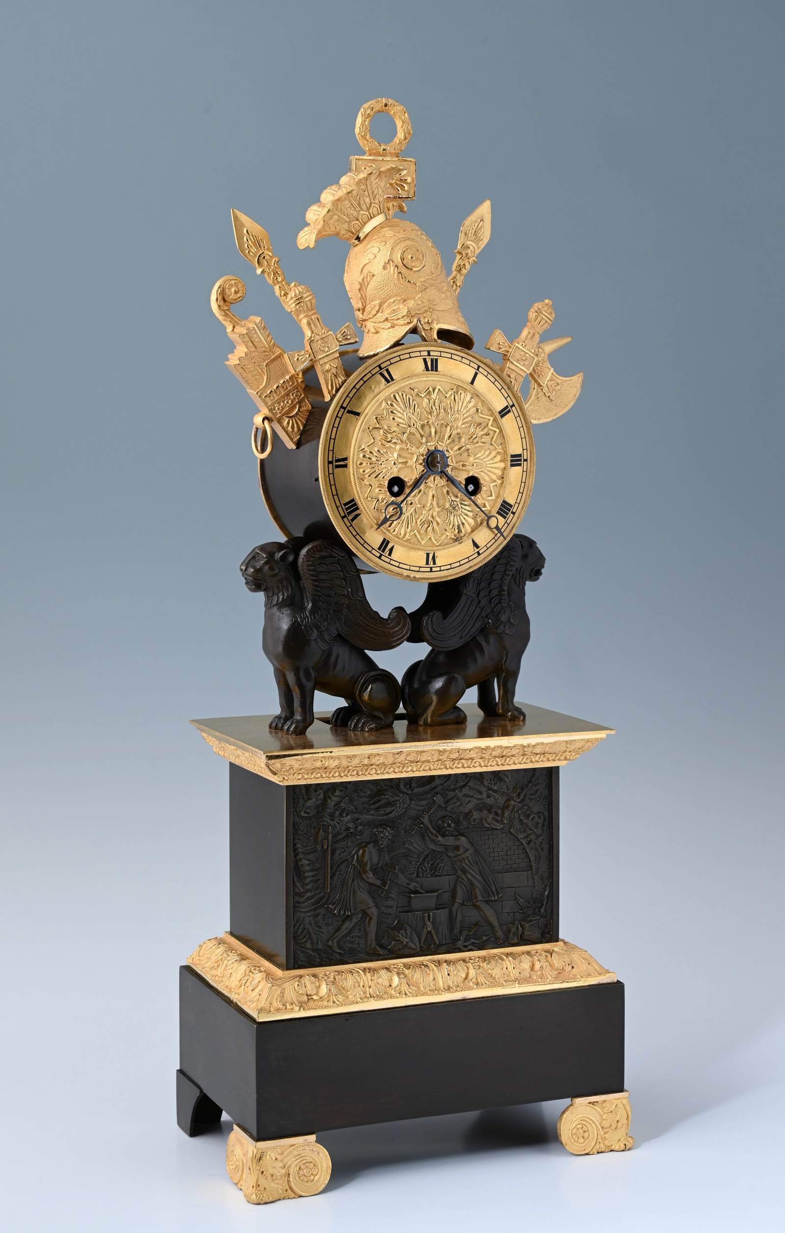 Een Franse Empire vuurverguld bronzen pendule, circa 1810
