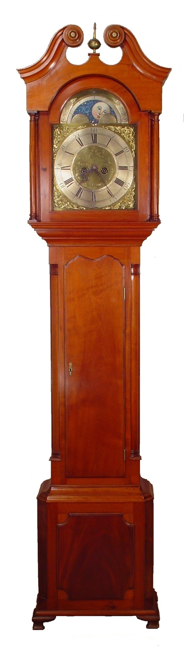 Een fraaie Engelse mahonie staande klok met pagoda top James Gibb Stockton circa 1770