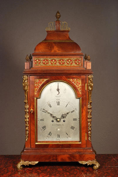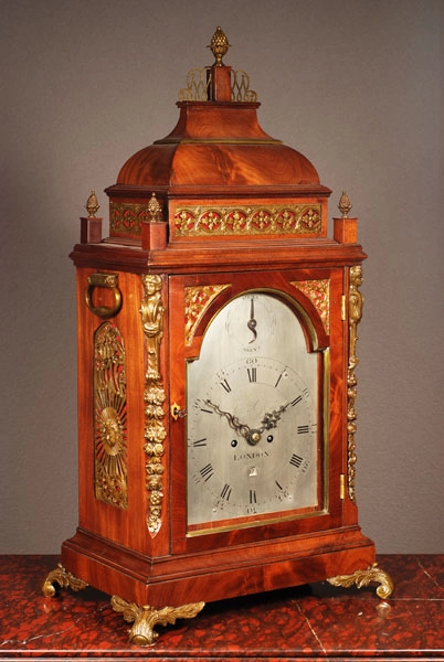 Een fraaie Engelse mahonie staande klok met pagoda top James Gibb Stockton circa 1770