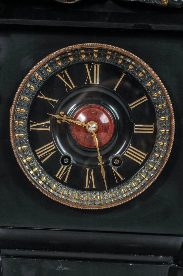 Imposante Napoleon III pronkpendule, vuurverguld brons met gepatineerde engelen