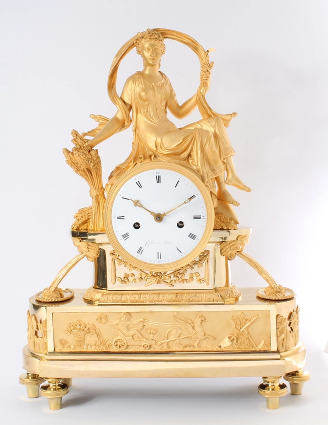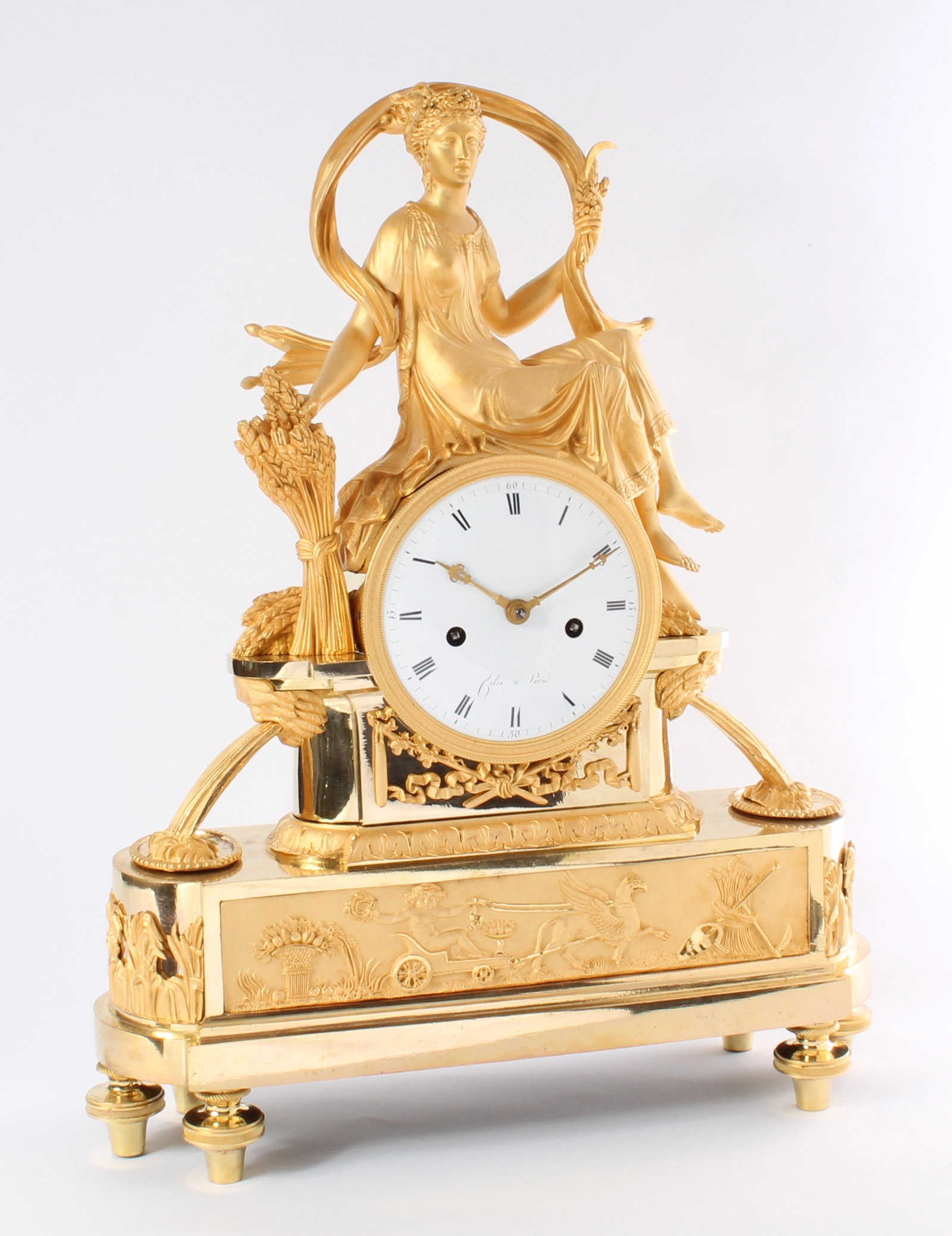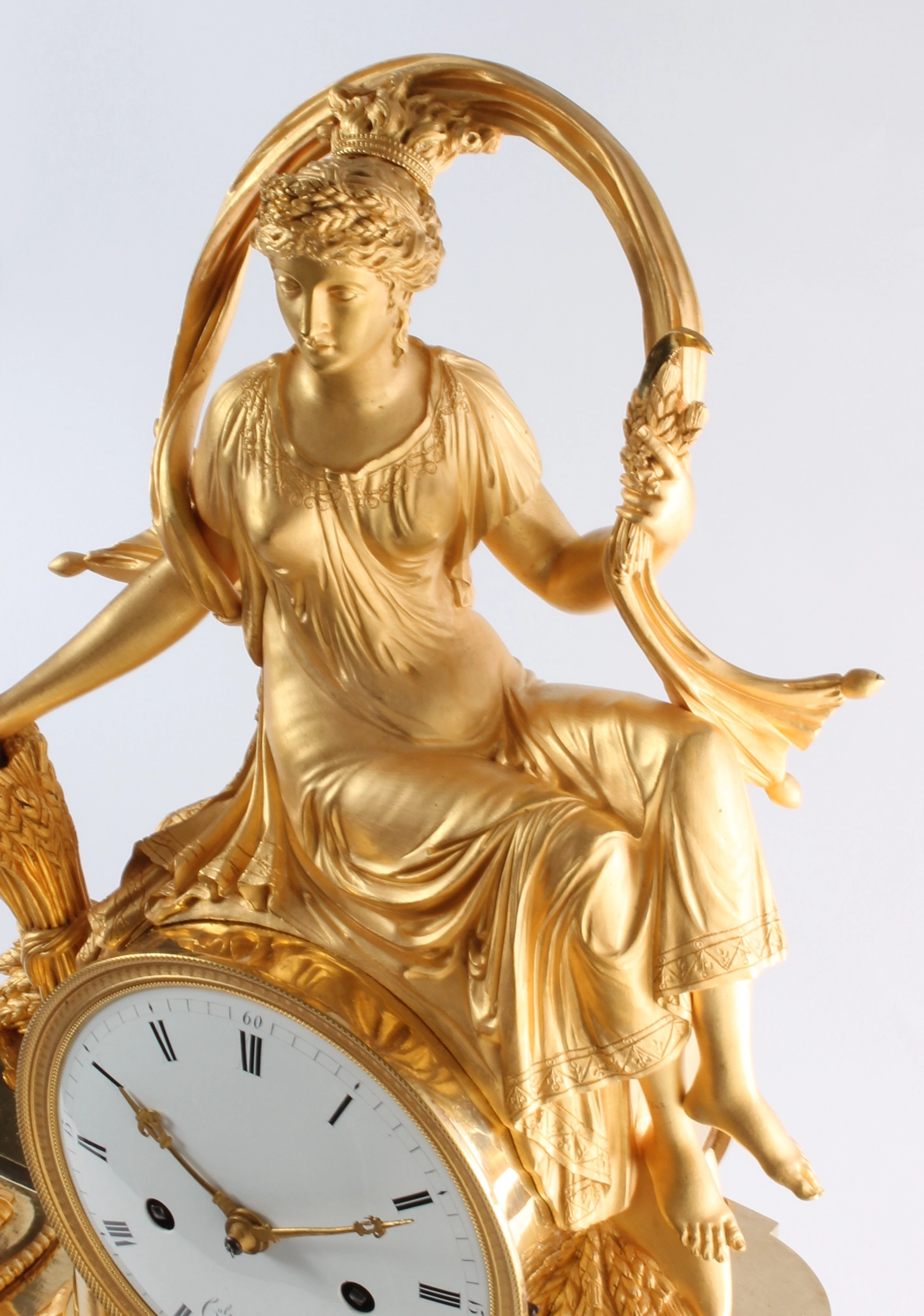 Een goede Franse Charles X vuurverguld bronzen figurale pendule, circa 1825.