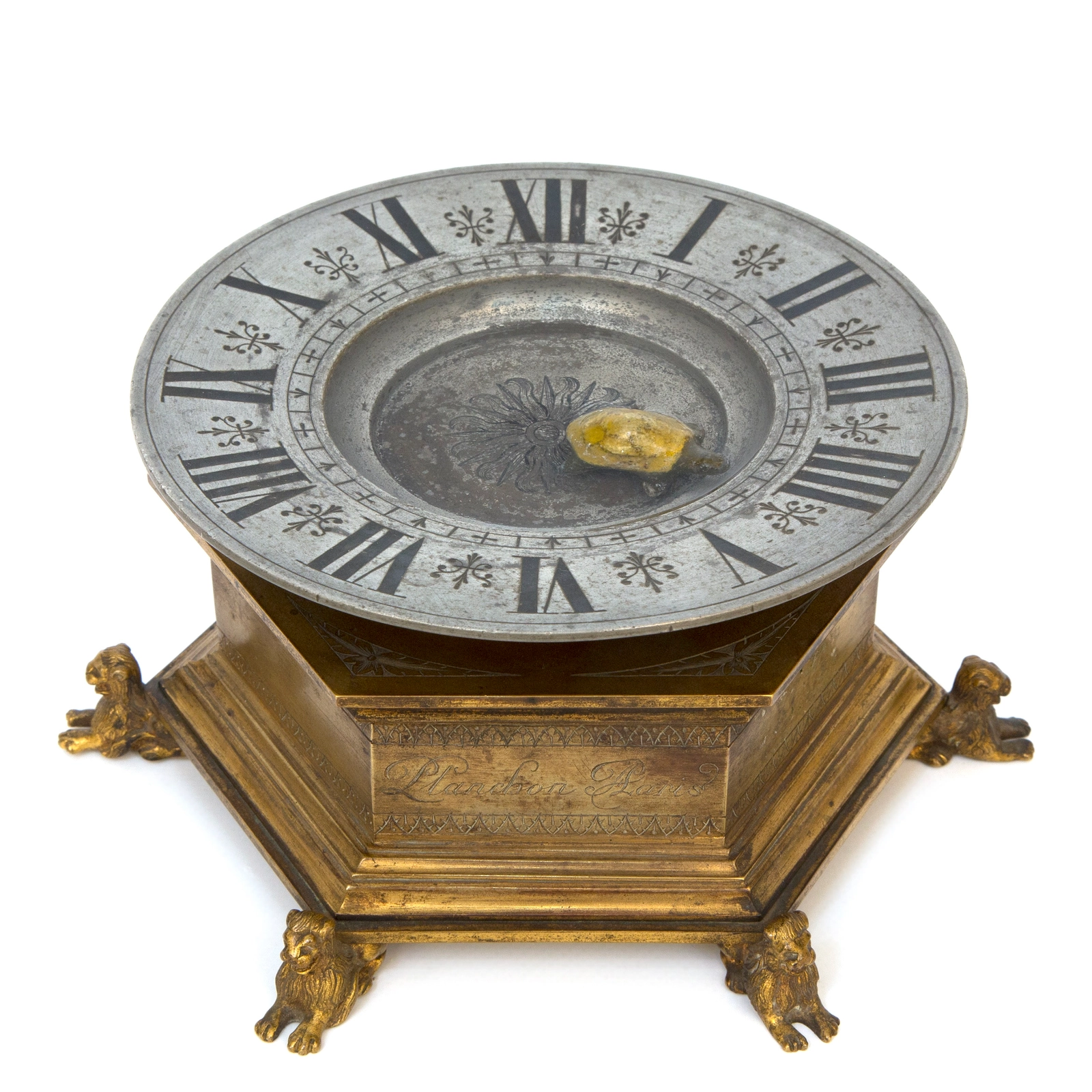 Een grote Franse Empire verguld bronzen vaaspendule met fabeldieren, circa 1800