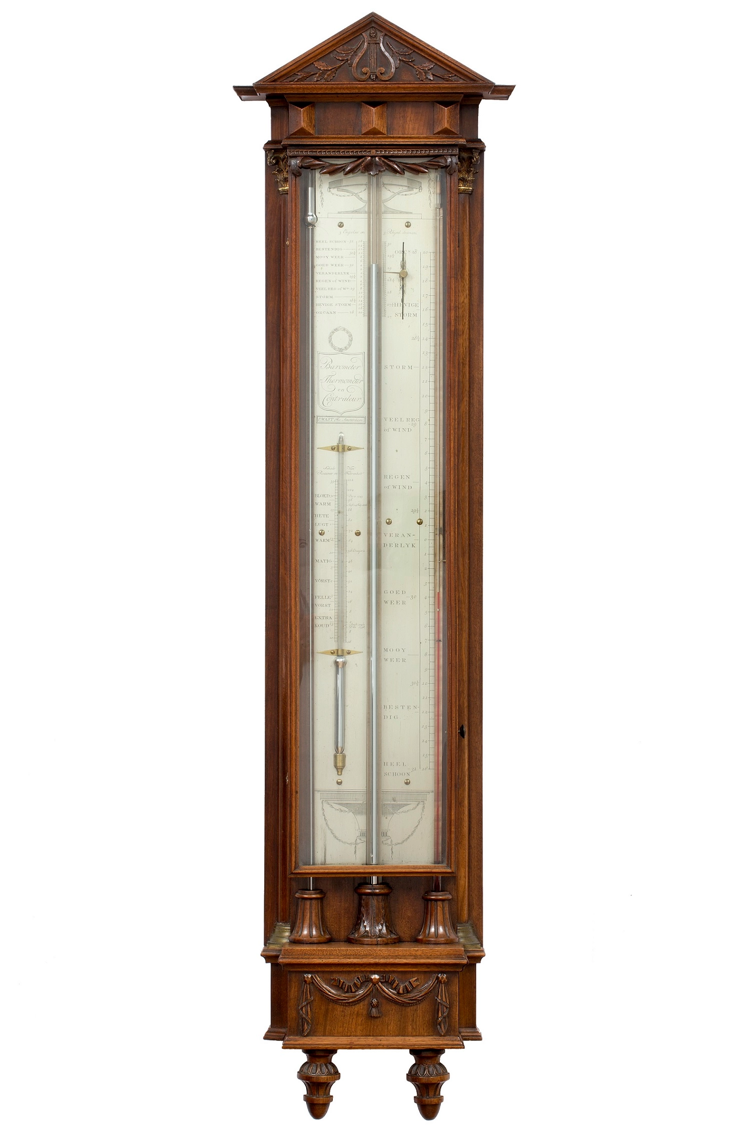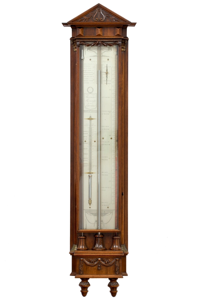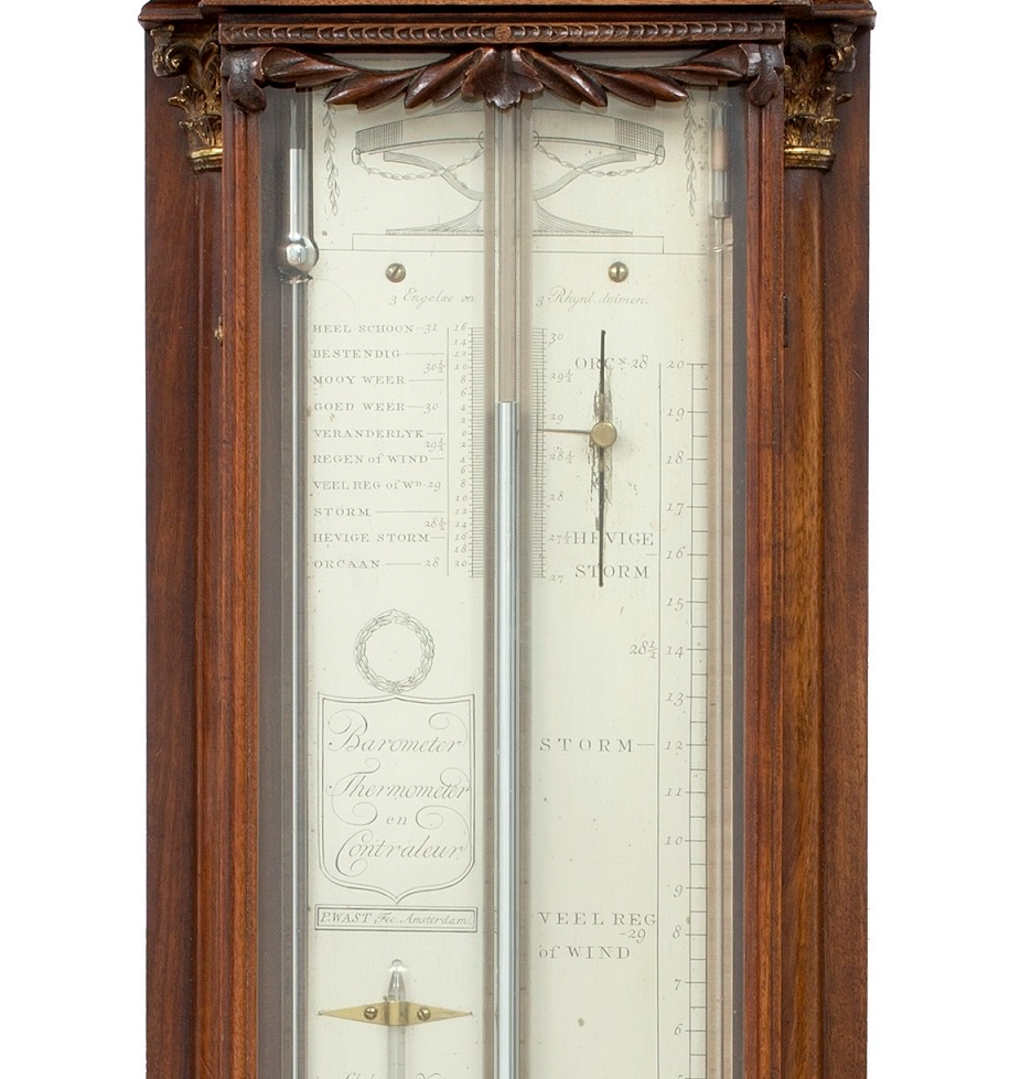 A good Dutch Louis XVI mahogany inlaid 'bakbarometer', by Zaveri Ori, circa 1800