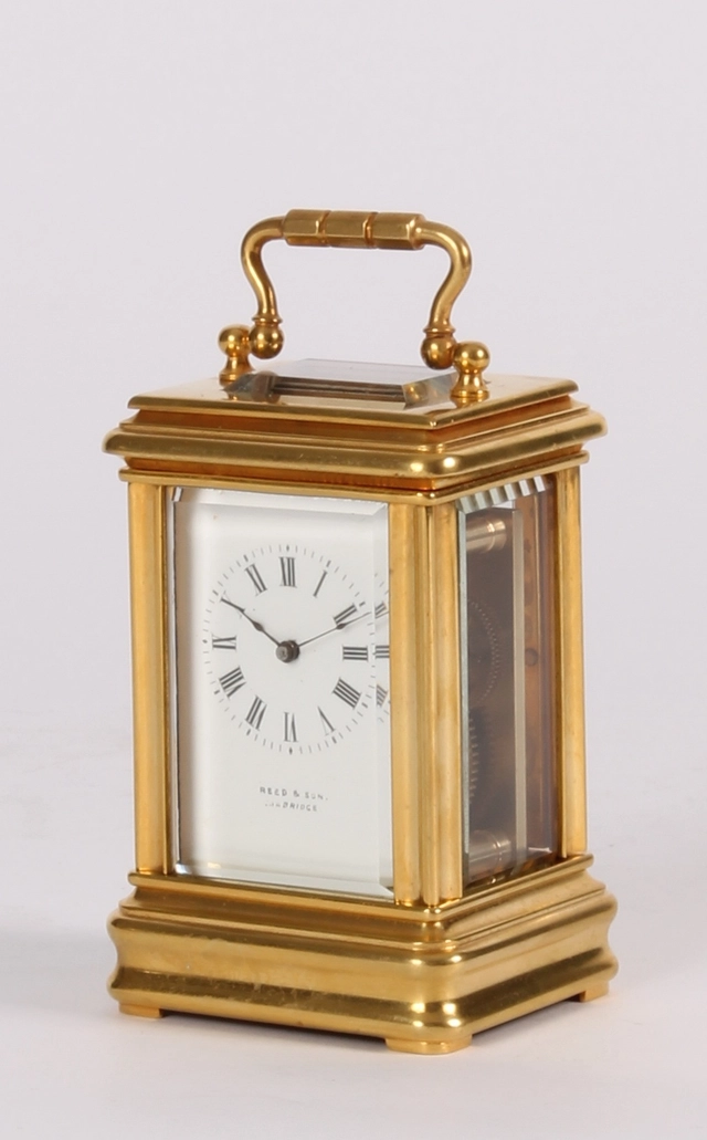 Een miniatuur Frans Regence-stijl verguld messing tafelklokje, circa 1870.