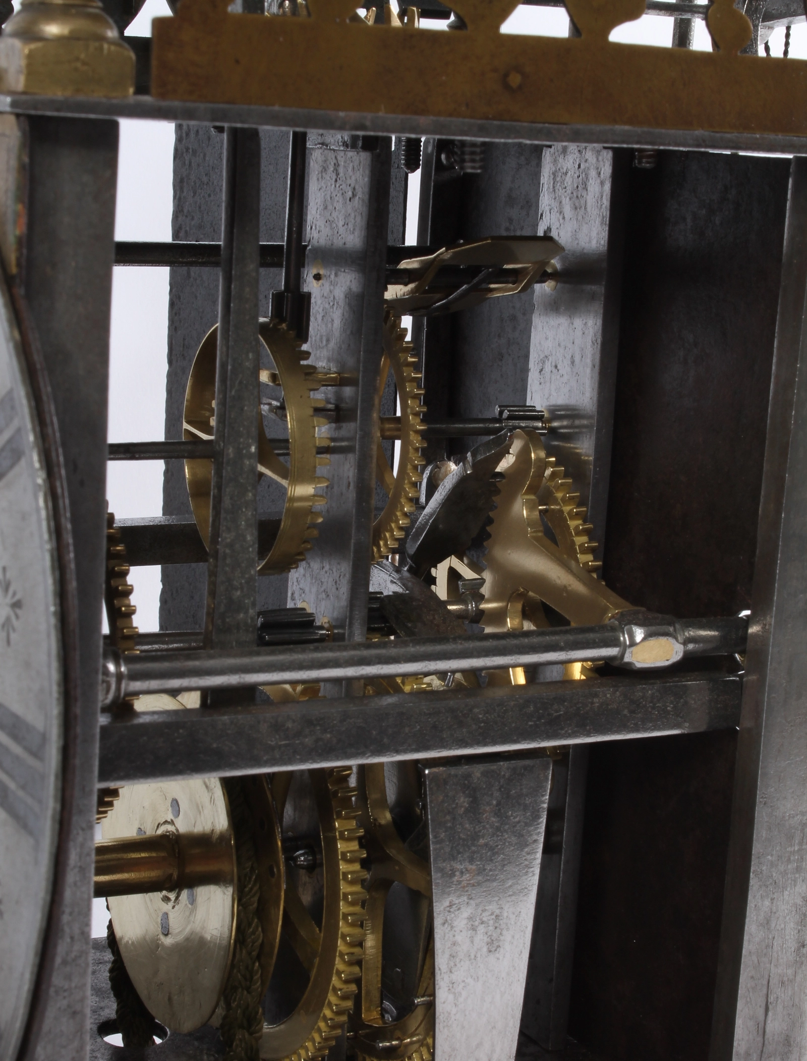 Een vroege Franse provinciale ijzer en messing Morbier wandklok, comstreeks 1735