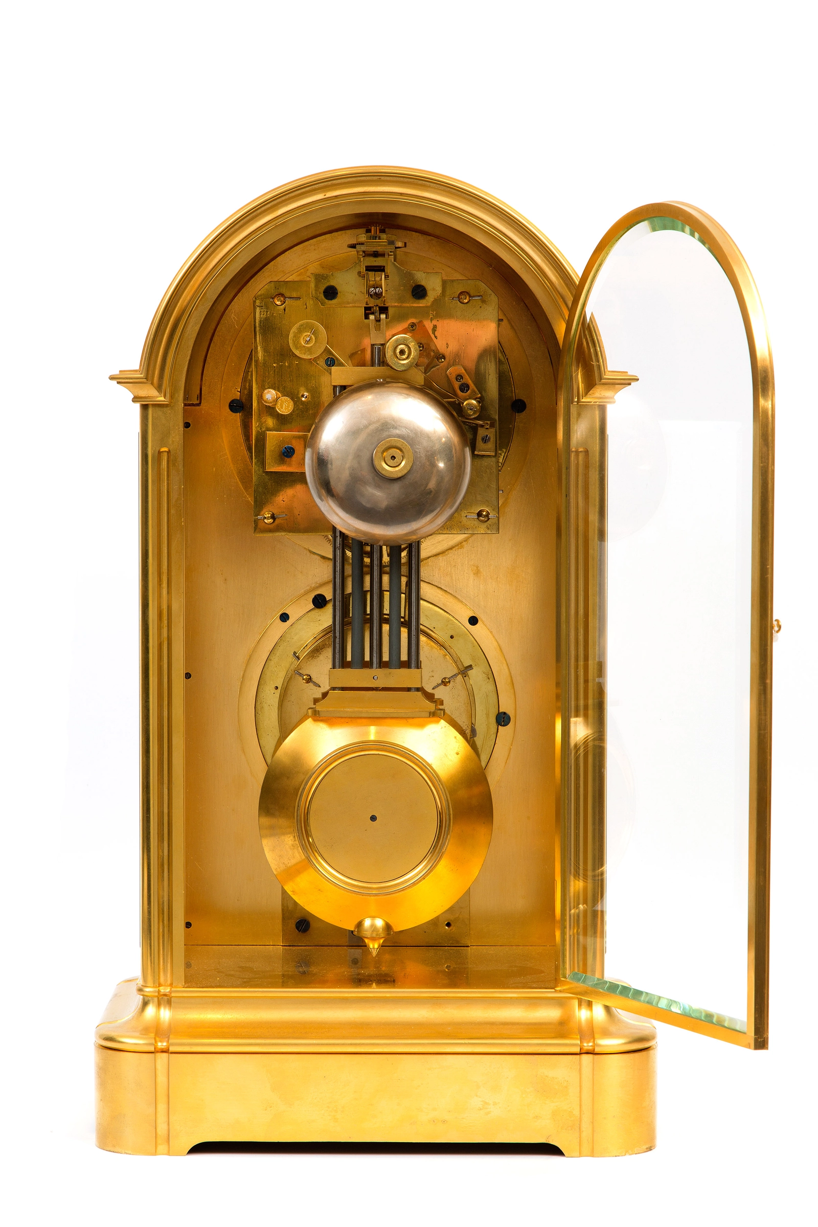 Een Franse verguld messing reisklok met kwartierrepetitie en wekker circa 1880