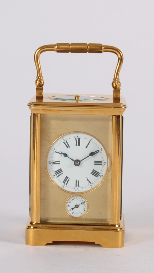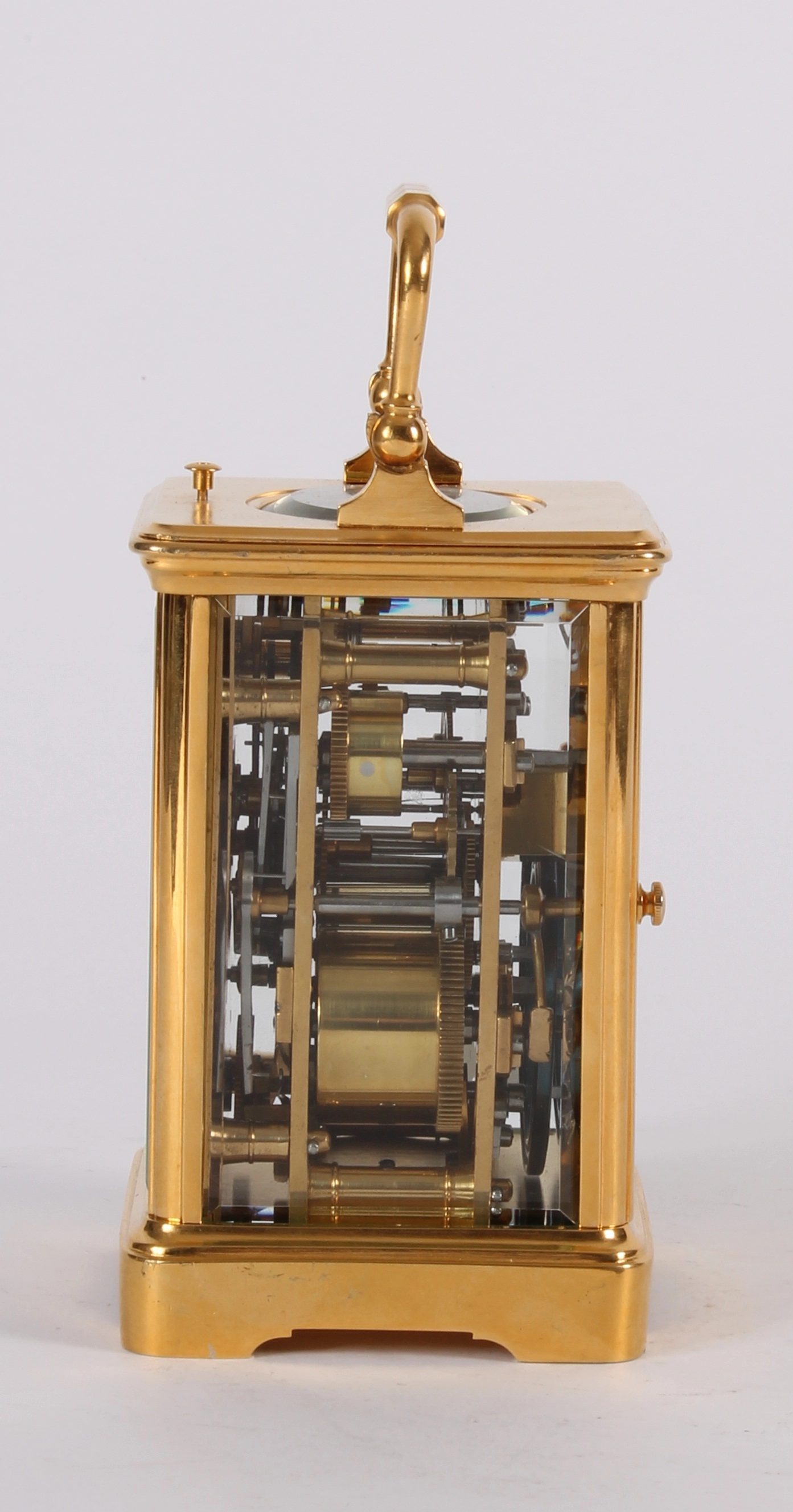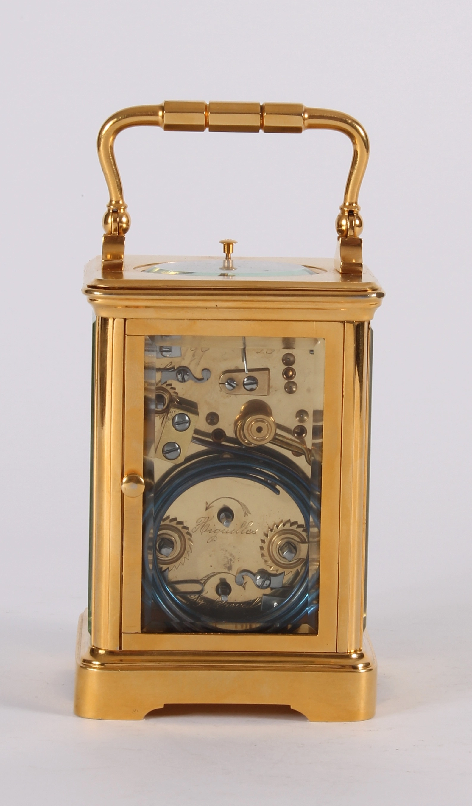 Een fraaie Franse verguld messing reiswekker met kwartierrepetitie, door Margaine, circa 1870