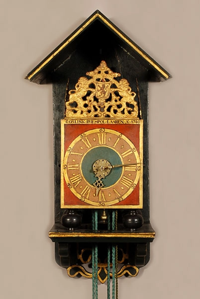 Een Hollandse wortelnoten staande klok met slagwerk en wekker Ed Brookes Amsterdam circa 1725