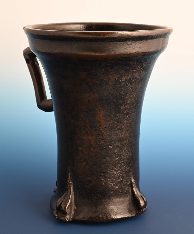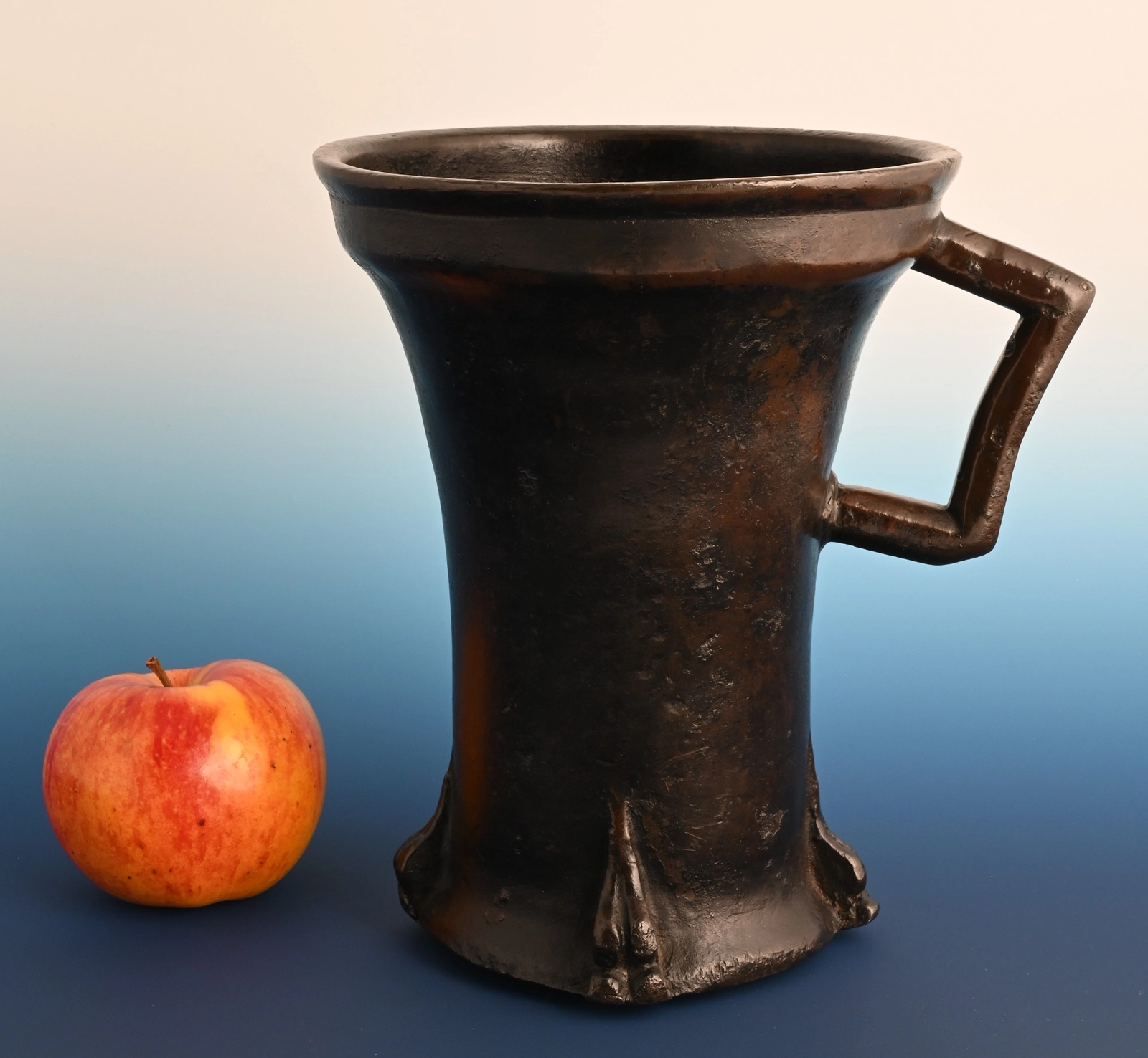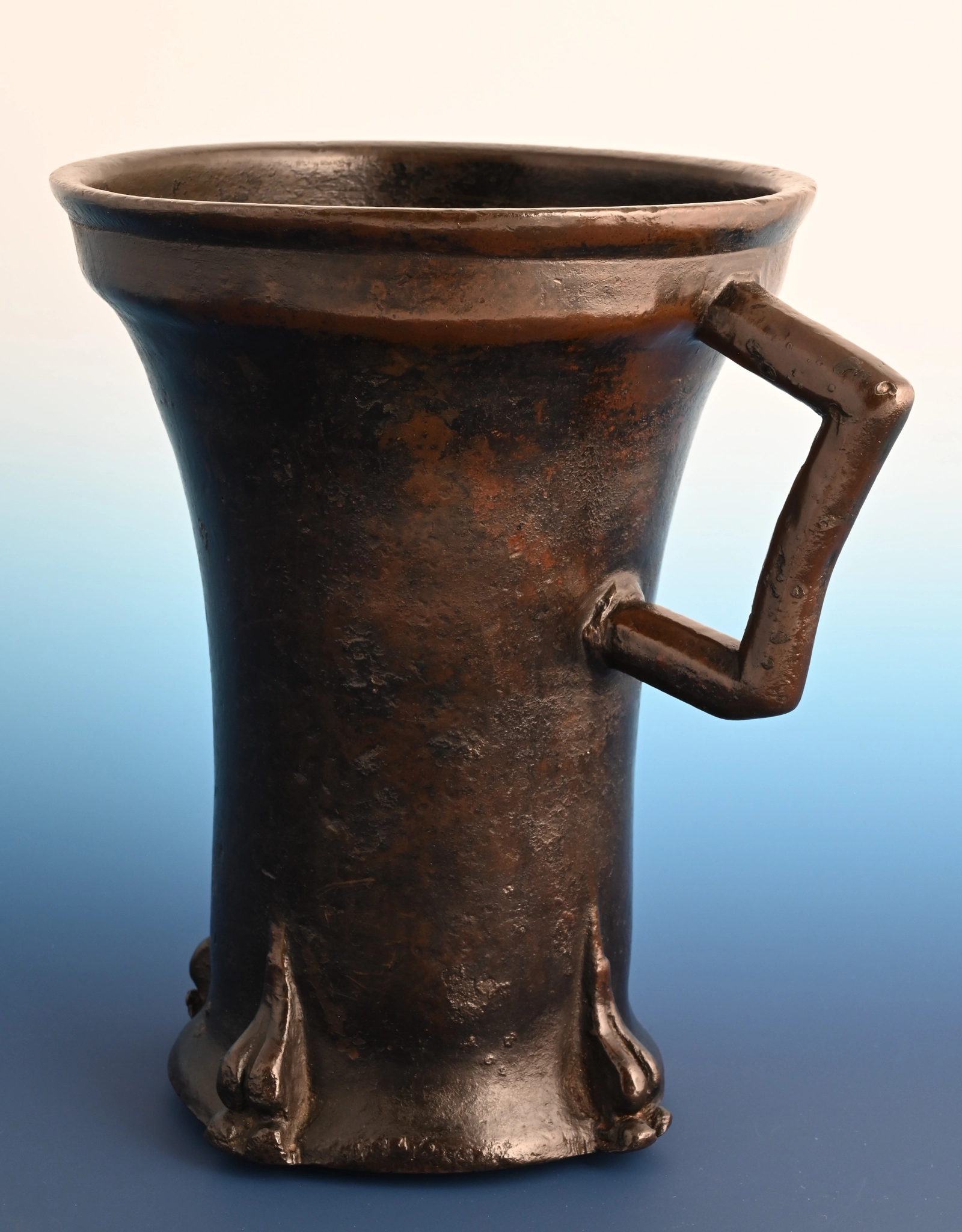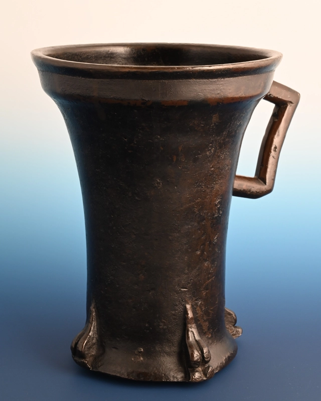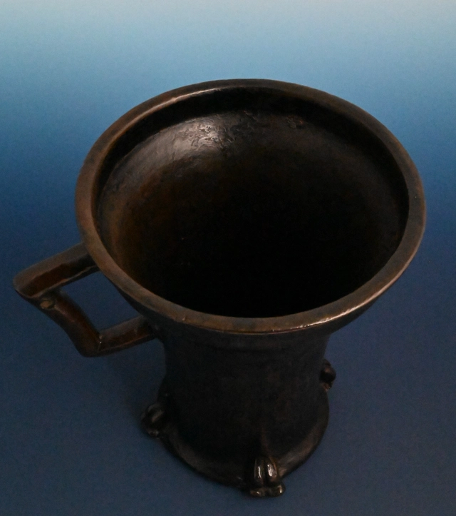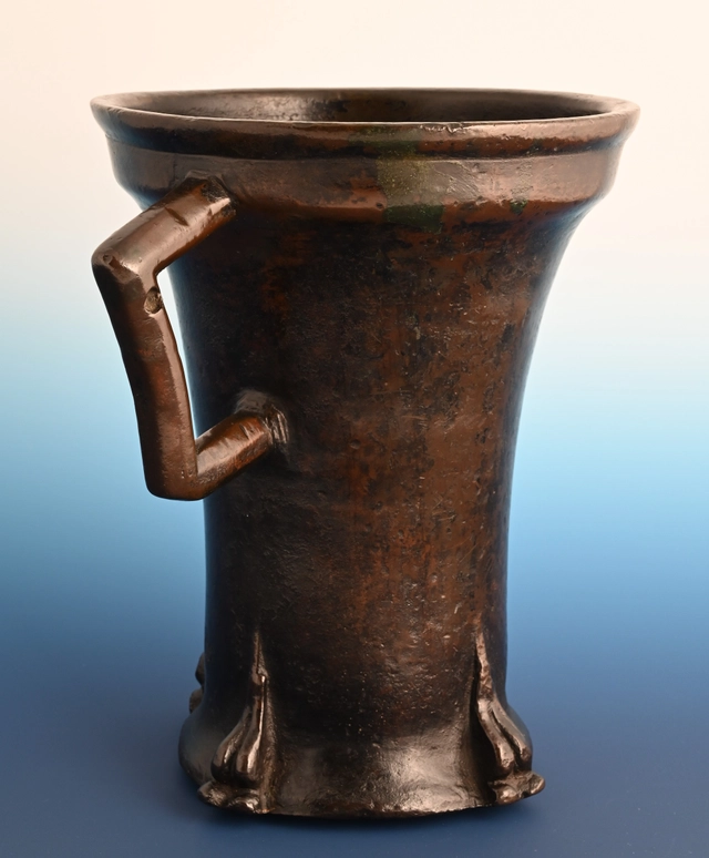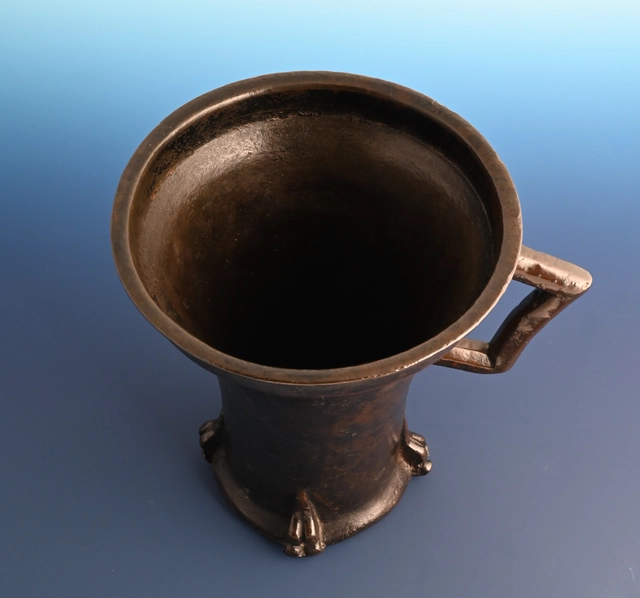Deze bronzen vijzel is in de Gotische periode gegoten in Duitsland.