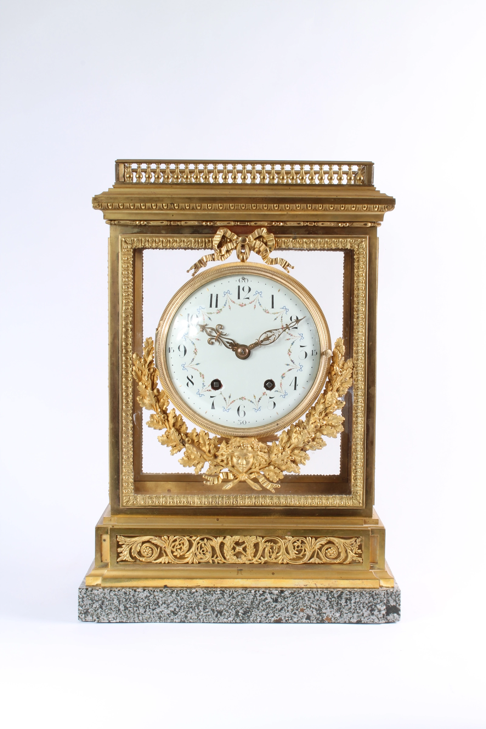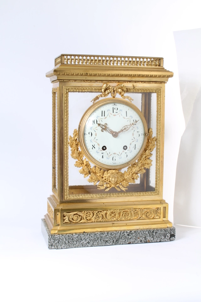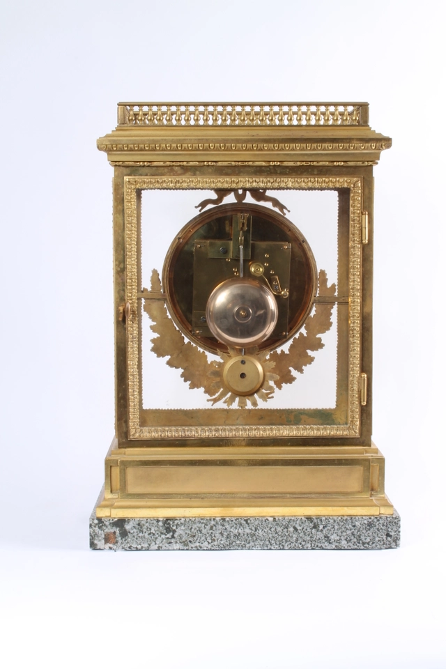 Een bronzen adelaar horlogestandaard met koetshorloge met kwartierrepetitie
