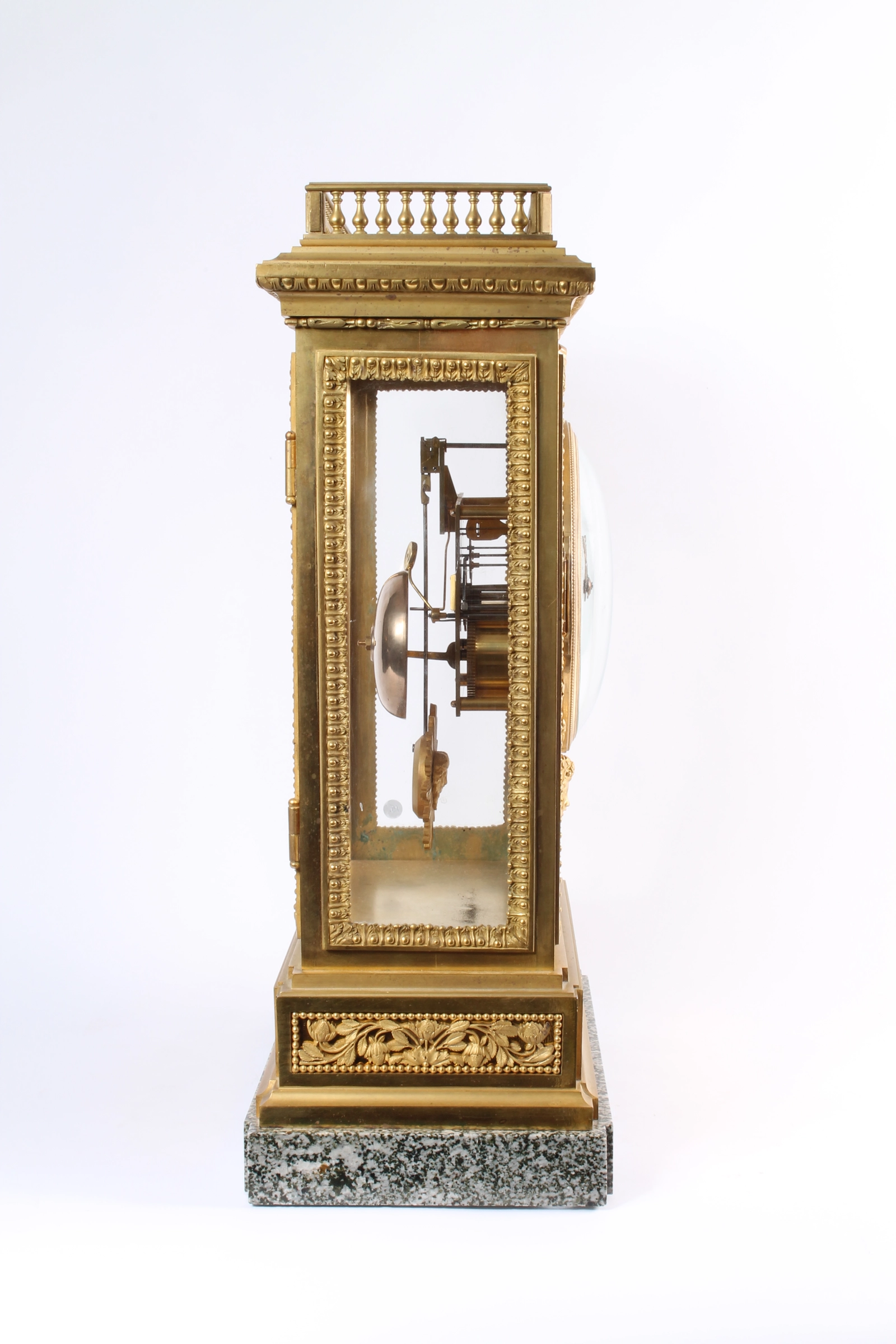 Imposante Napoleon III pronkpendule, vuurverguld brons met gepatineerde engelen