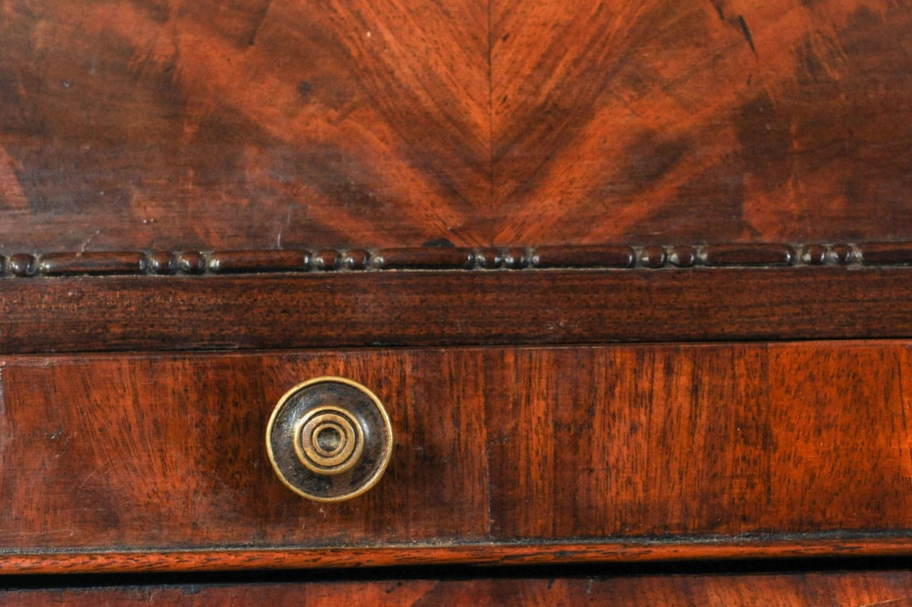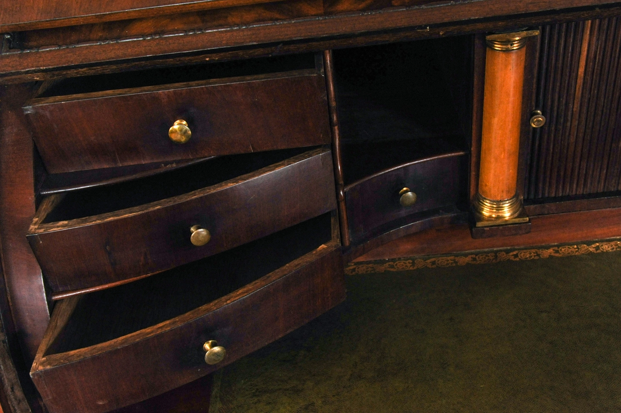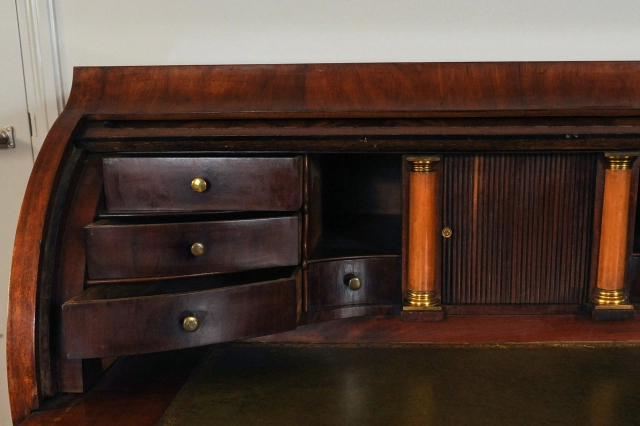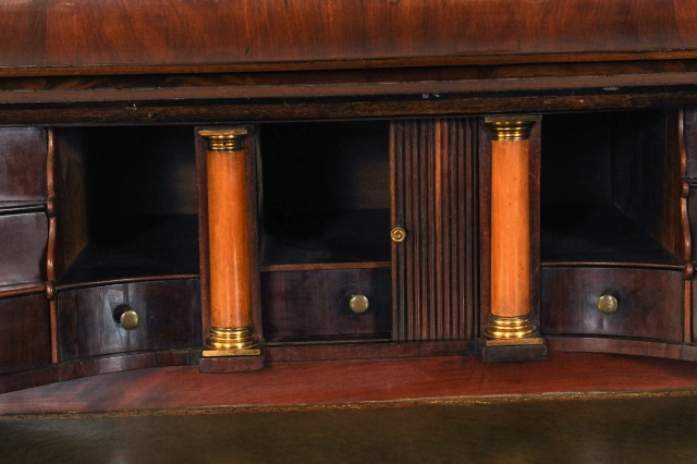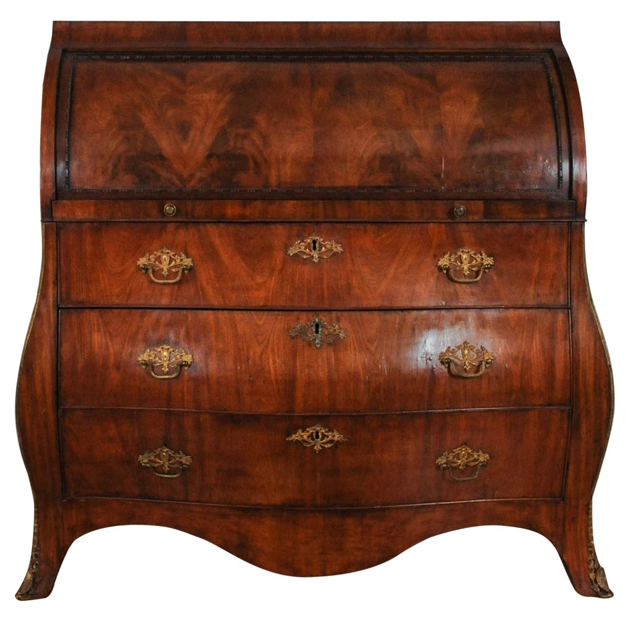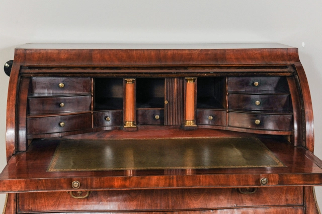Een fantastisch Hollands wortelnoten bureau, boekenkast met spiegeldeuren, circa 1740.