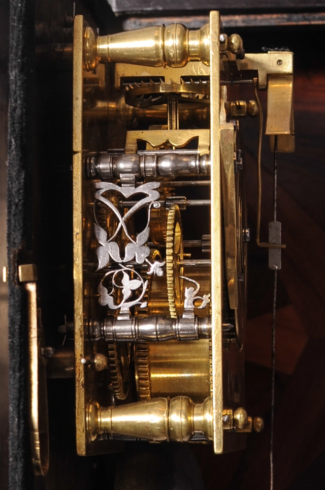 Een Hollandse wortelnoten staande klok met slagwerk en wekker Ed Brookes Amsterdam circa 1725