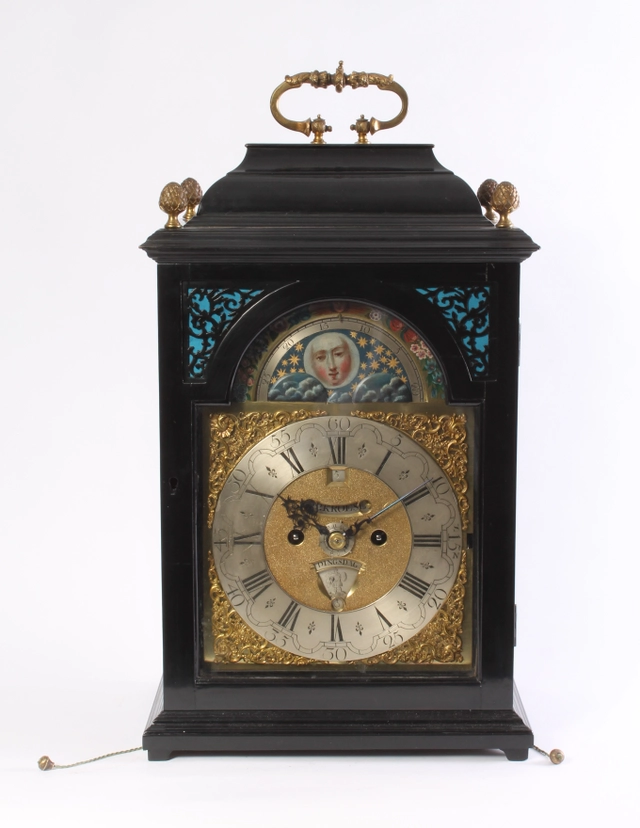Een Hollandse ebben en verzilverde tafelklok, zogenaamde 'Haagse klok', door Christiaan Reynaert Haghe, omstreeks 1665