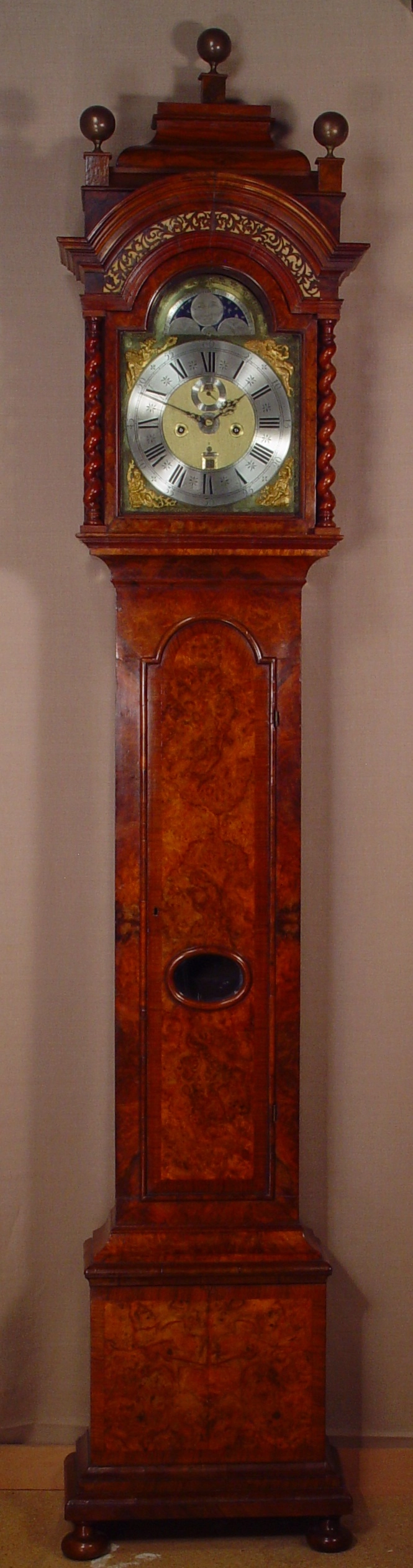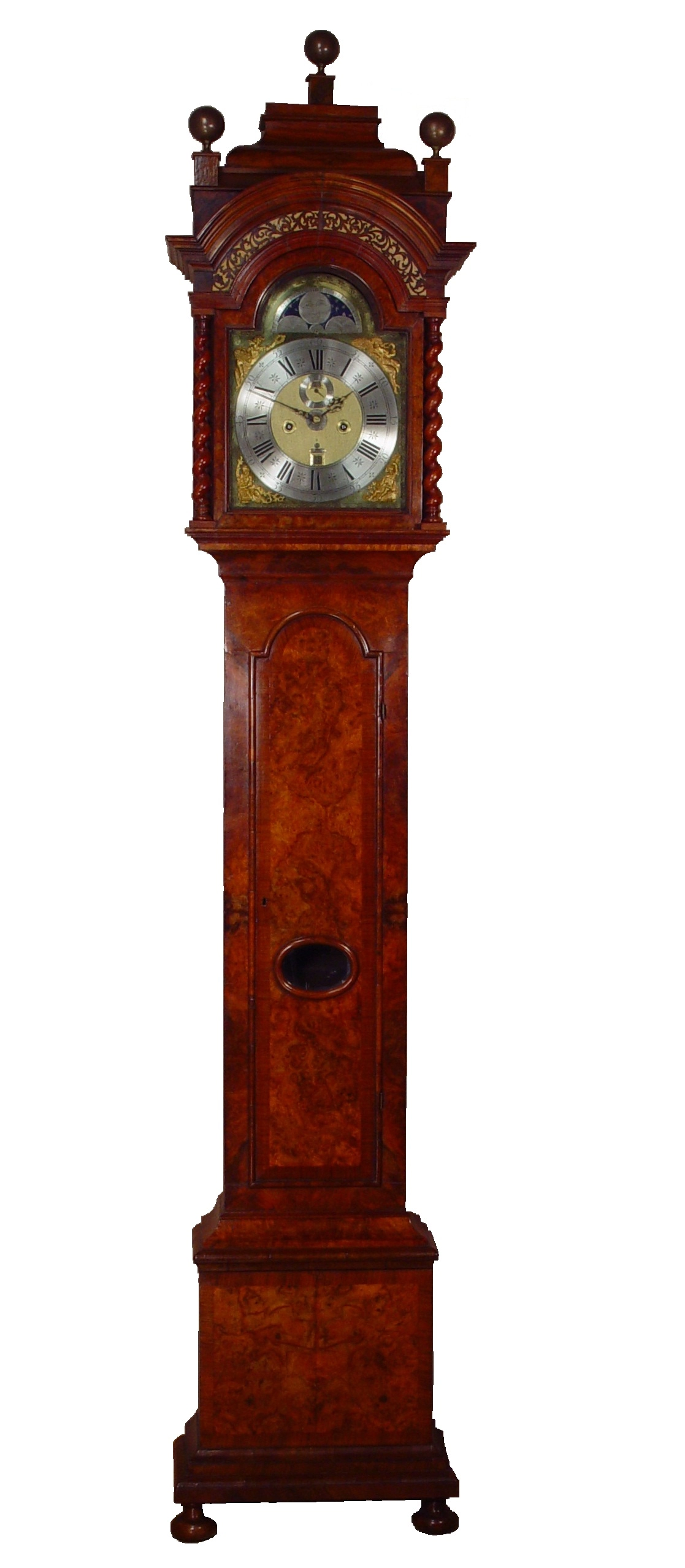 Een mooie Hollandse notenhouten staande klok Pieter Klok Amsterdam circa 1710