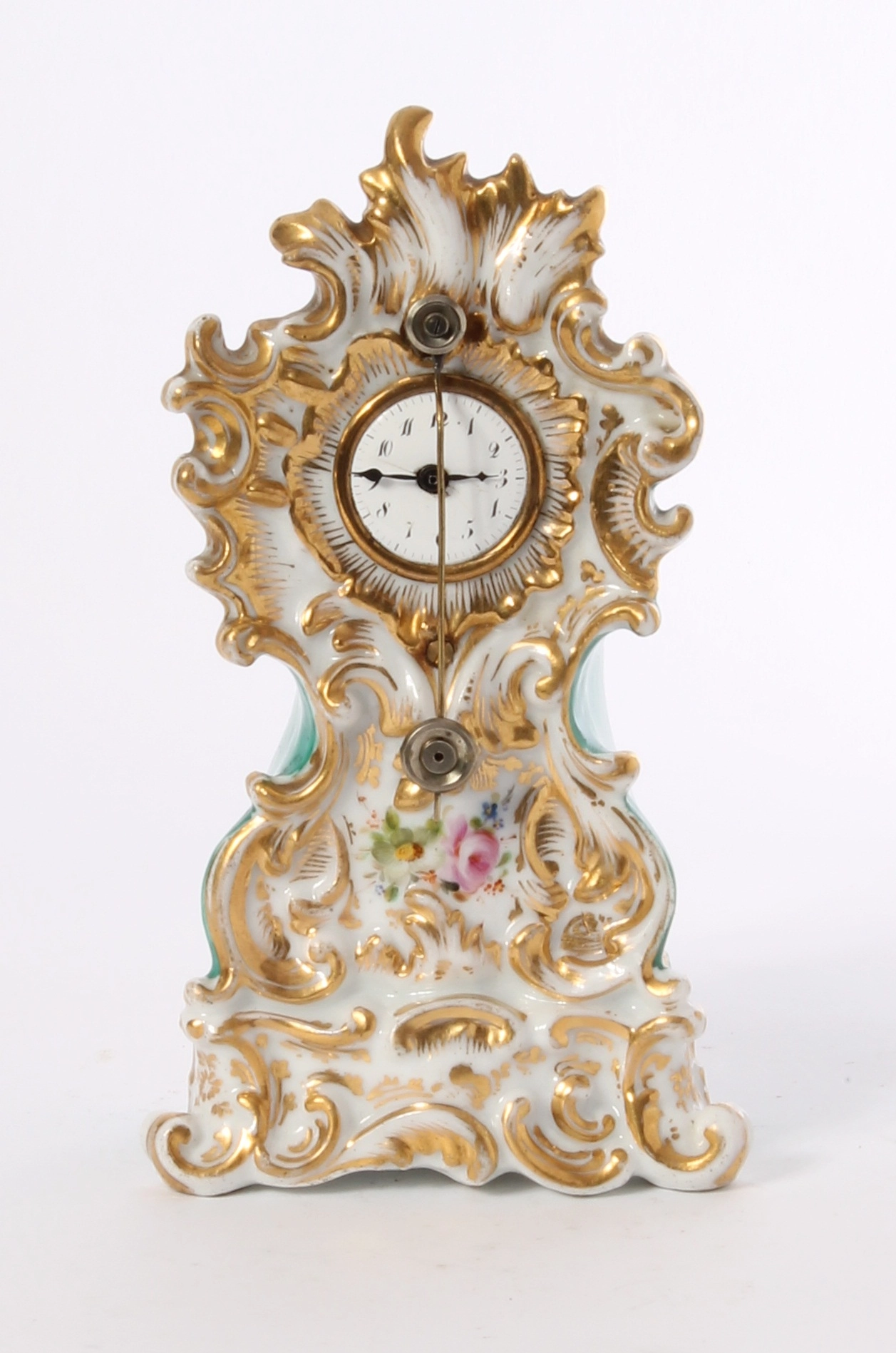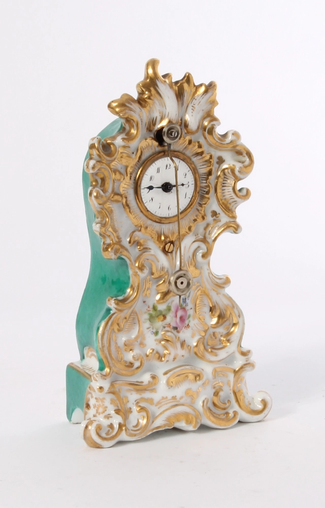 Een fraai klein Zuid Duits met schildpad gefineerd tafelklokje met Adam en Eva mechaniek, circa 1740.