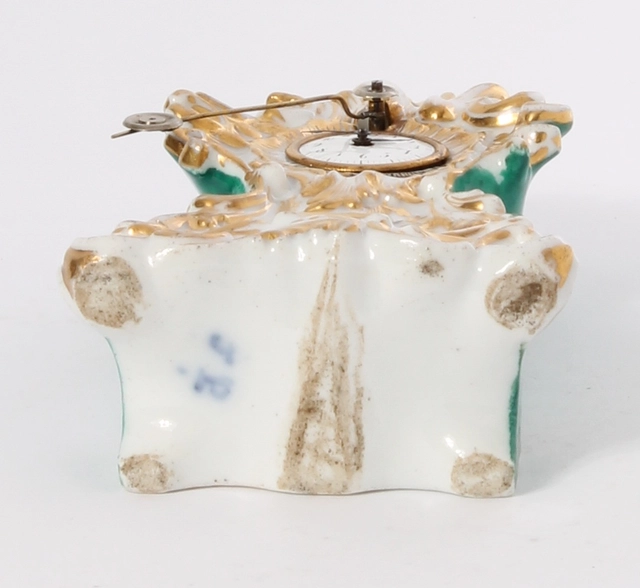 Een kleine horizontale tafelklok met wekker en repetitie, door P.I. Radzinski, omstreeks 1750
