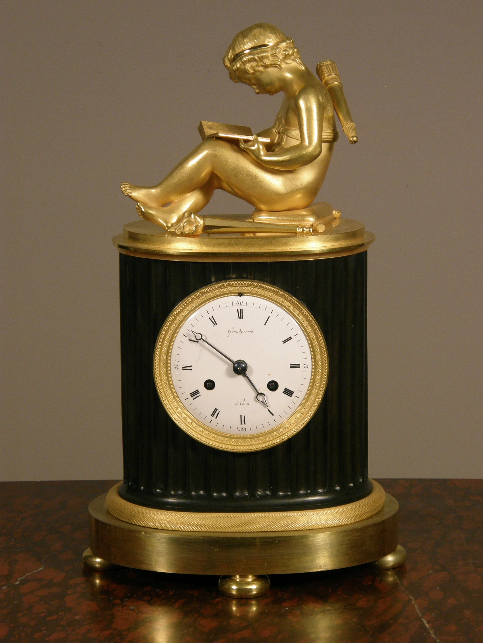 Een kleine horizontale tafelklok met wekker en repetitie, door P.I. Radzinski, omstreeks 1750