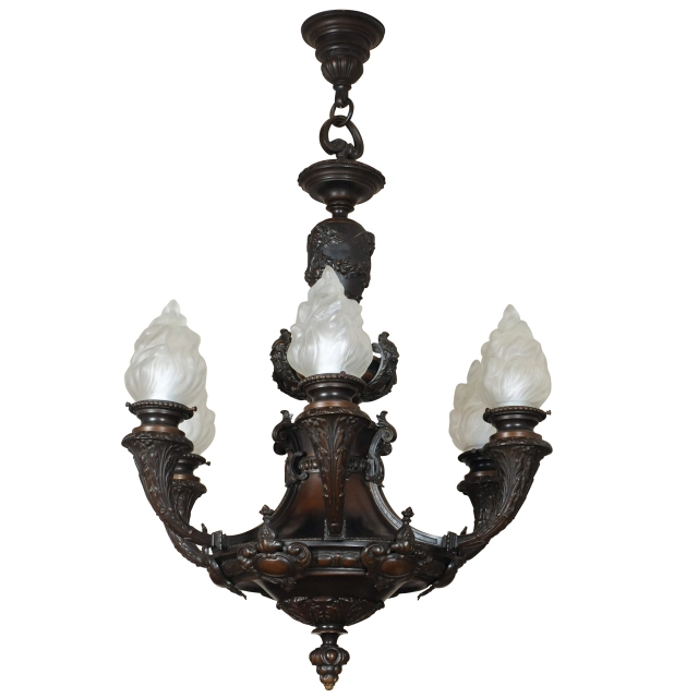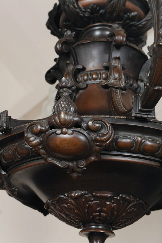 Een paar grote verguld bronzen figuratieve lampen toegeschreven aan E.F. Caldwell, circa 1900.