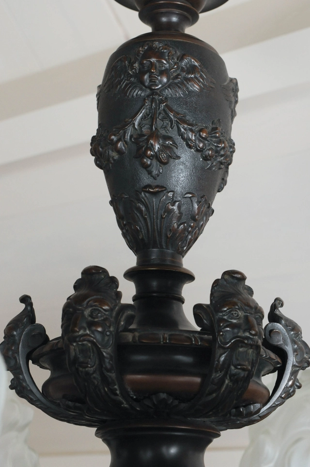 Imposante Napoleon III pronkpendule, vuurverguld brons met gepatineerde engelen